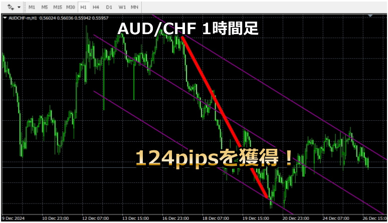 これらの実績は、チャネルラインを根拠にしたトレード例です。必ずしも同じ結果になるわけではありませんが、「どのように活用できるか」の参考事例としてご覧ください。