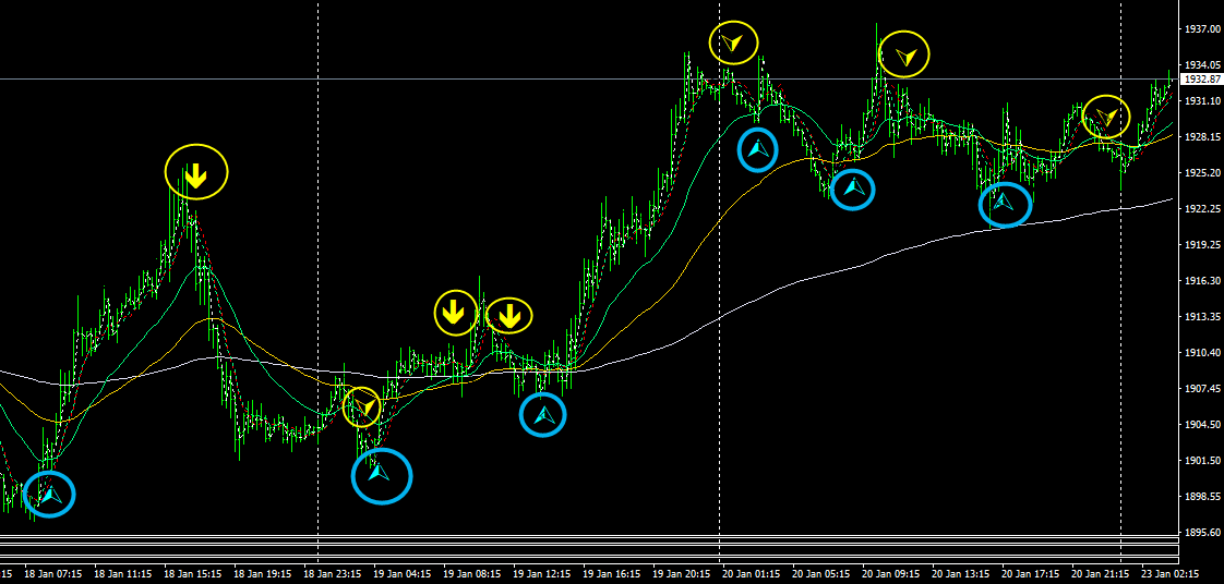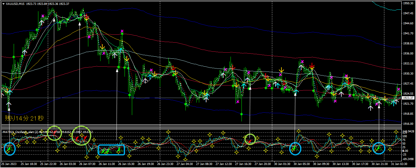 ※ 金15分足 強サインのみ表示(表示サインは選択可)