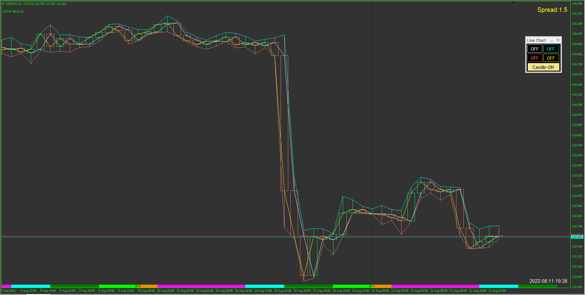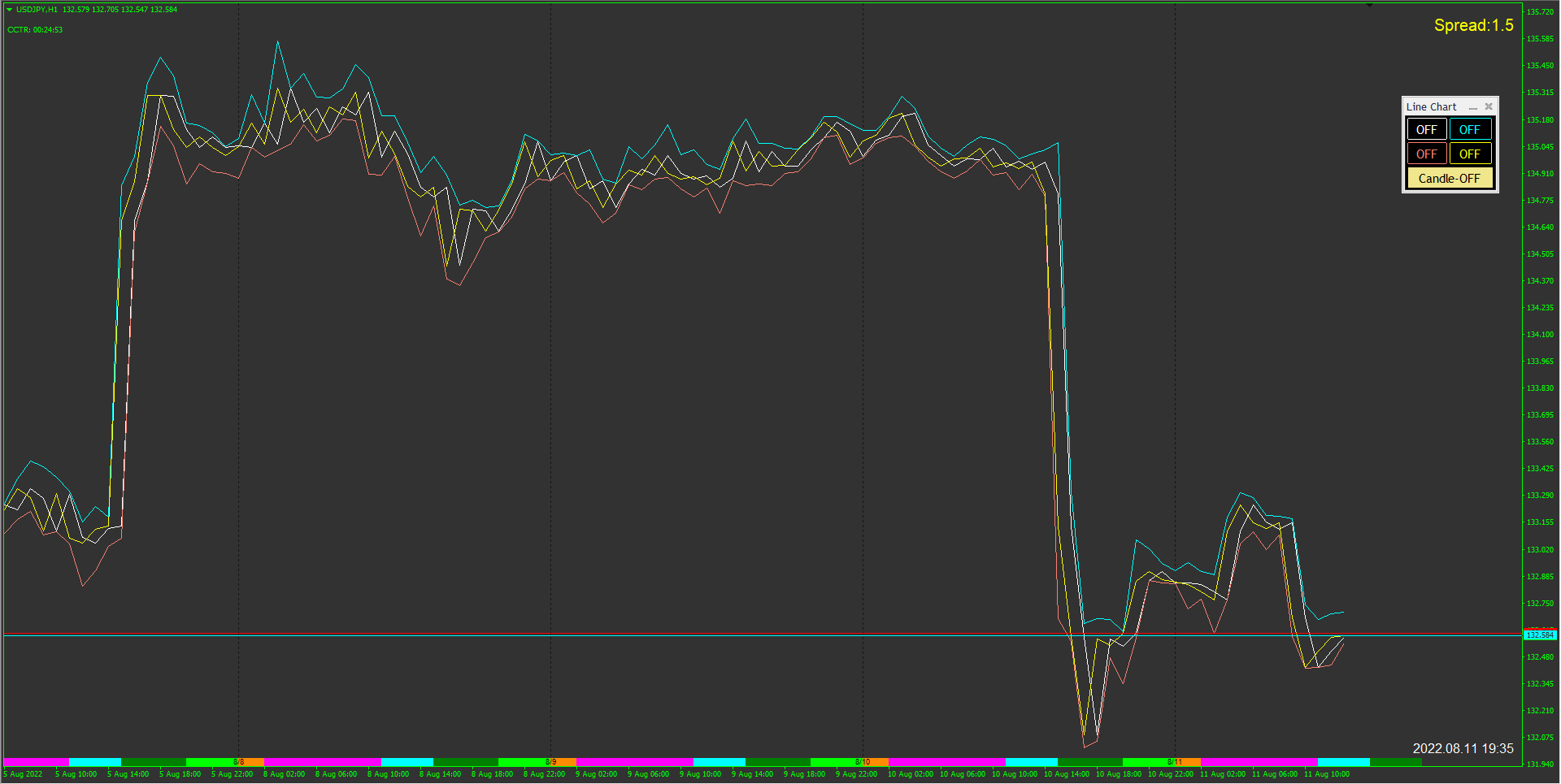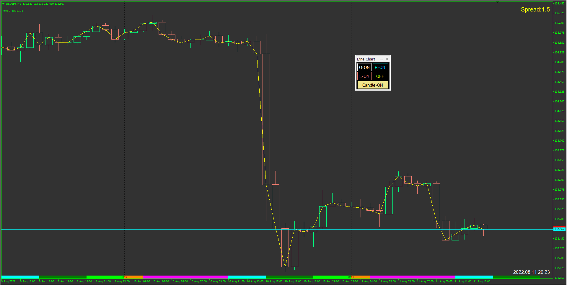 MT4標準搭載のラインチャートは終値だけが表示されます。 プライスアクションを研究したり、価格の動きに沿った手法を構想・考案する際に、終値だけでは物足りない場合もあると考えたので作りました。