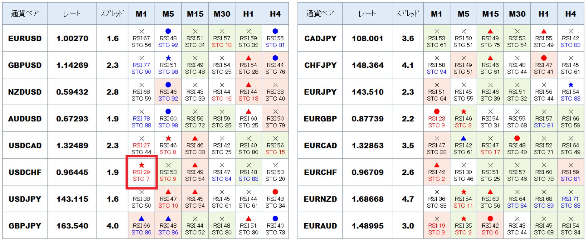 その他に、パーフェクトオーダー・RSI・ストキャスティクスがどのような状態にあるのかを表示して知らせてくれます。