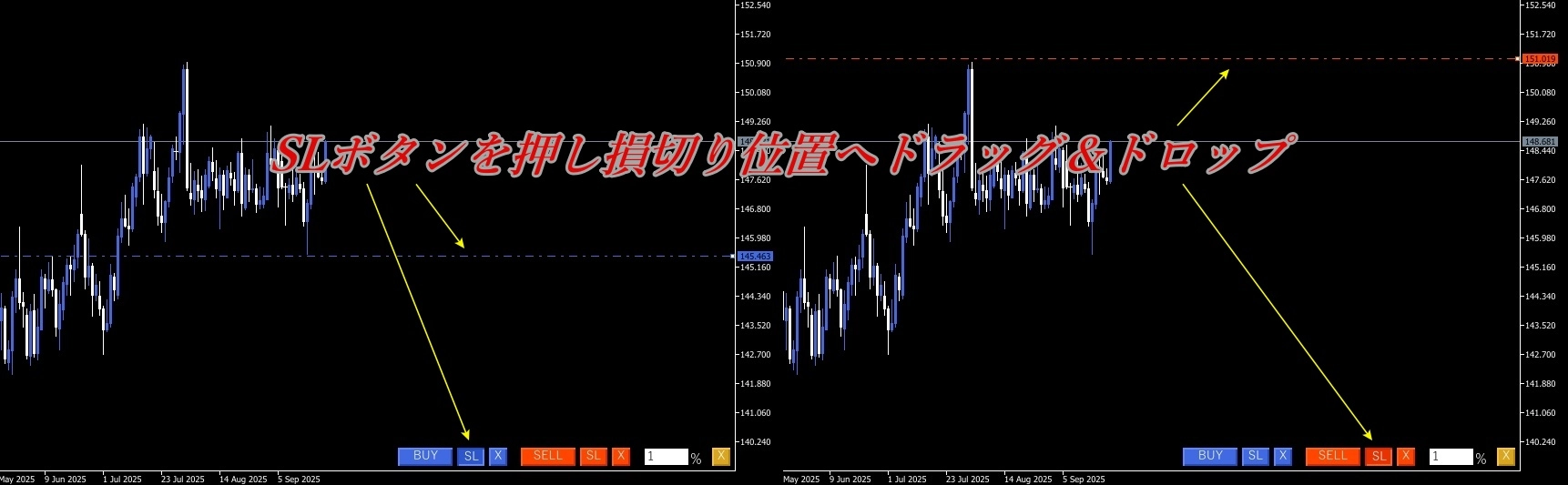パネルの「SL」ボタンを押すと、チャート上に損切り予定ラインが出現します。