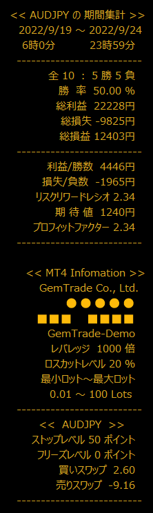 MT4のトレード履歴と情報を表示するインジケーター (単通貨集計版)