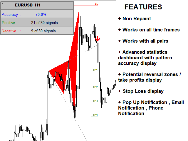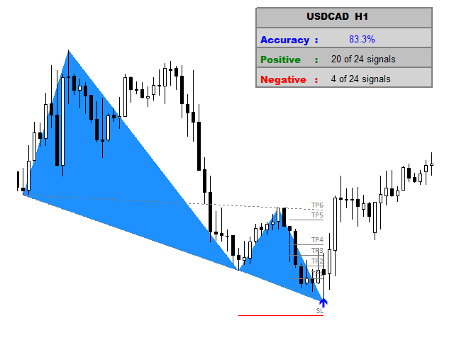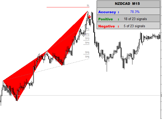 • 各パターンにはストップロスと5つのフィボナッチ・ターゲットがあります。