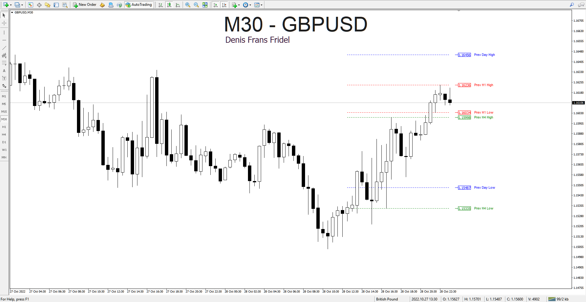 Previous Candle Hi-Lo は、現在の価格に対する最後のローソク足のマルチタイムフレームの位置を確認するために使用します。