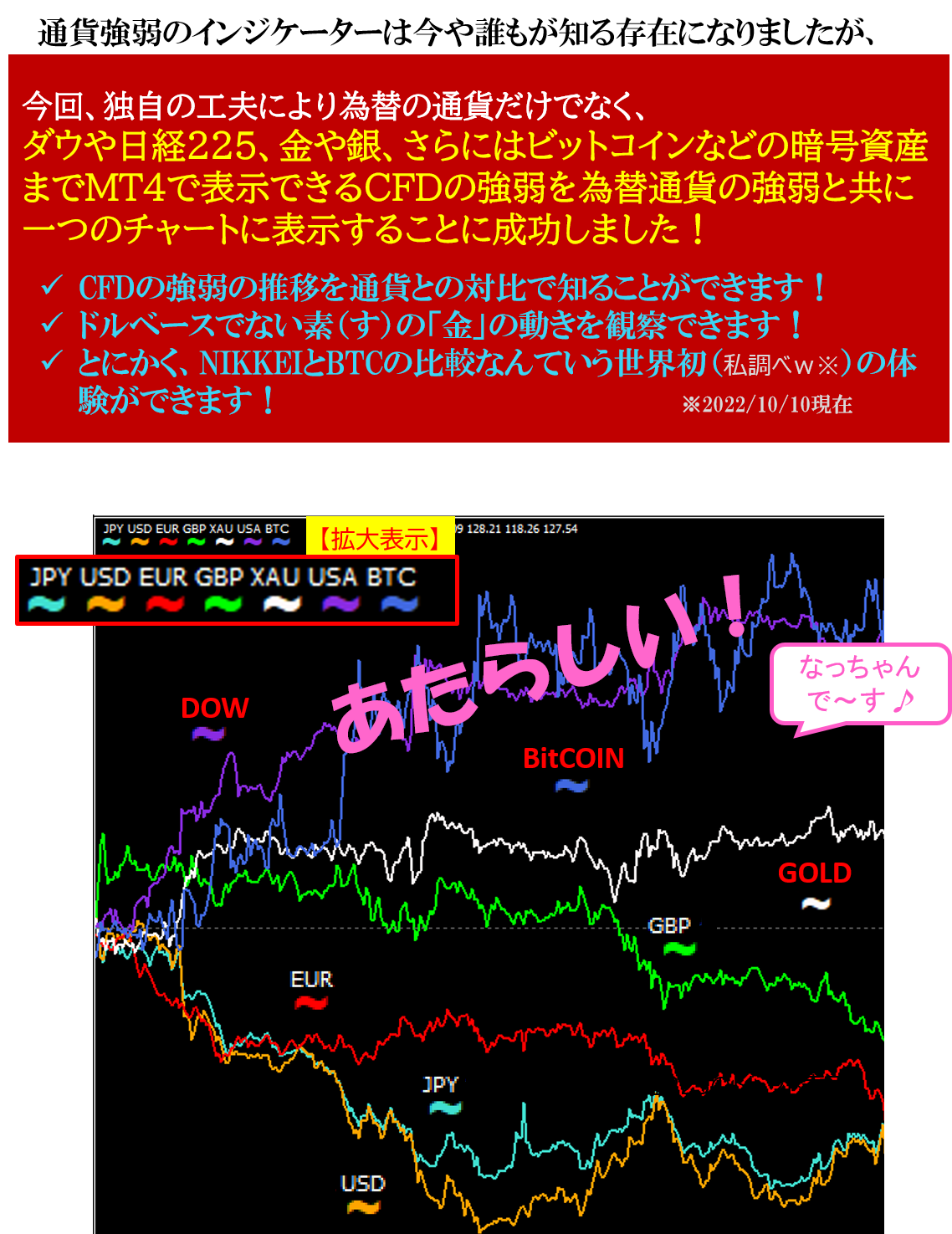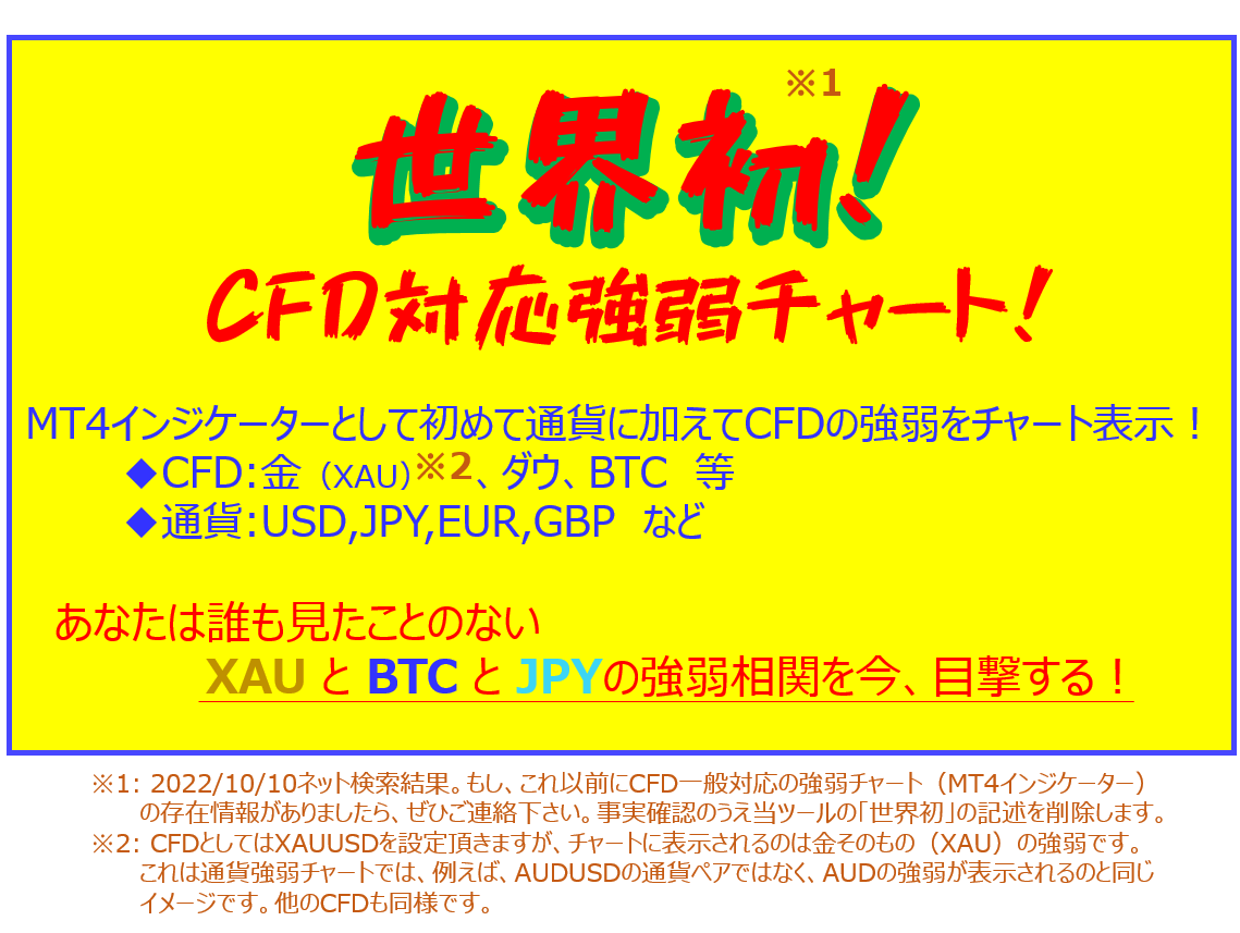 「金の通貨強弱」世界初!CFDの強弱も表示可能!金やビットコインの強弱変化を見てみませんか? Indicators/E-books