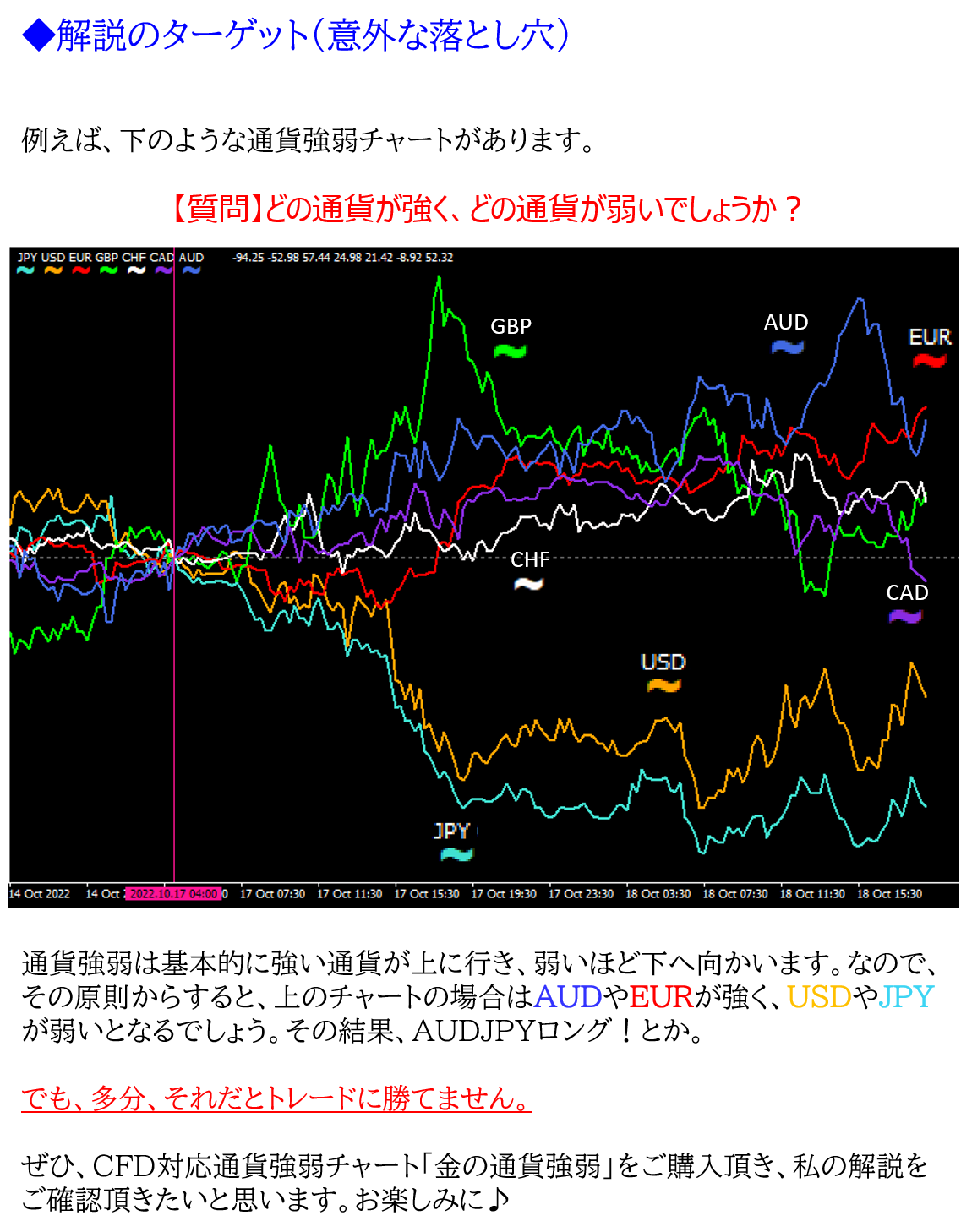 「なぜ通貨強弱チャートで勝てないのか?」 通貨強弱の意外な落とし穴⁉道具を宝物にするための方法を解説!「金の通貨強弱」の特別付録です♪