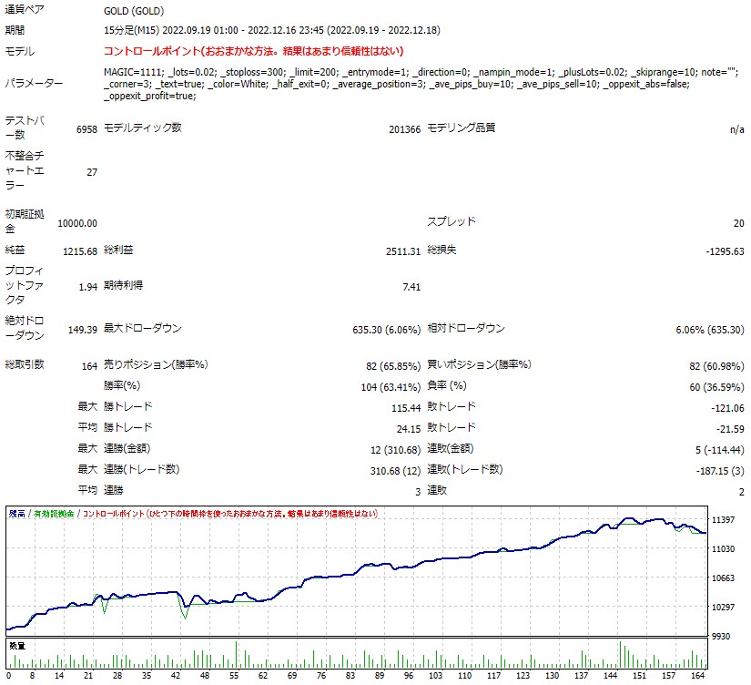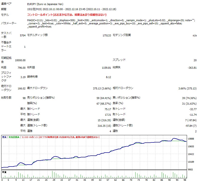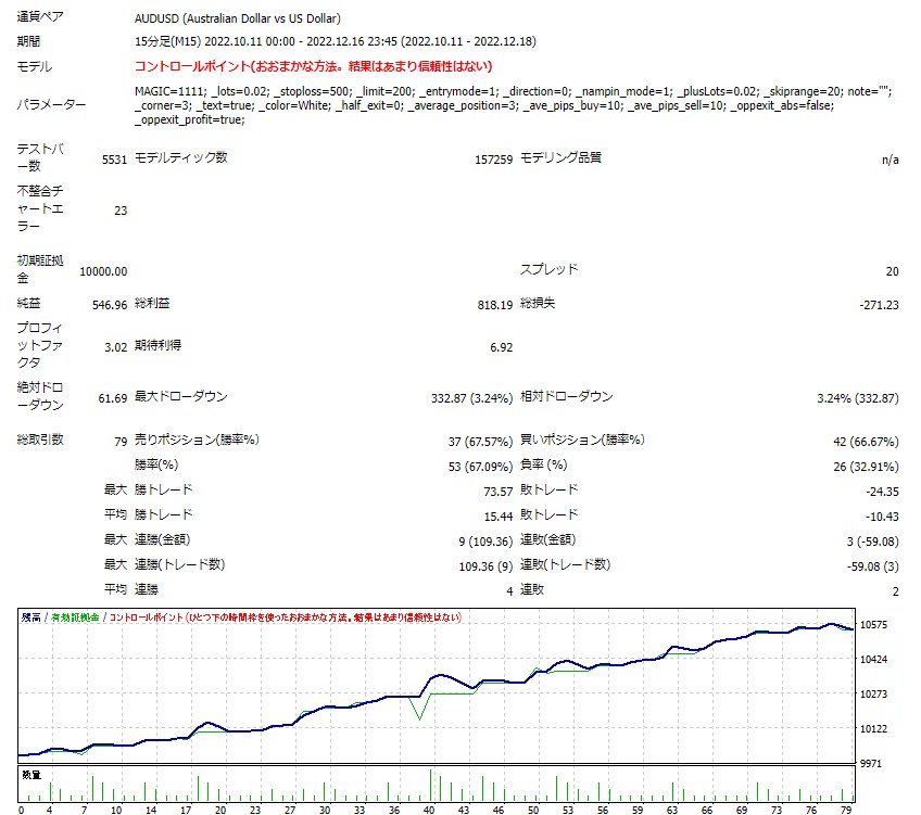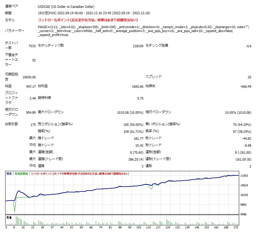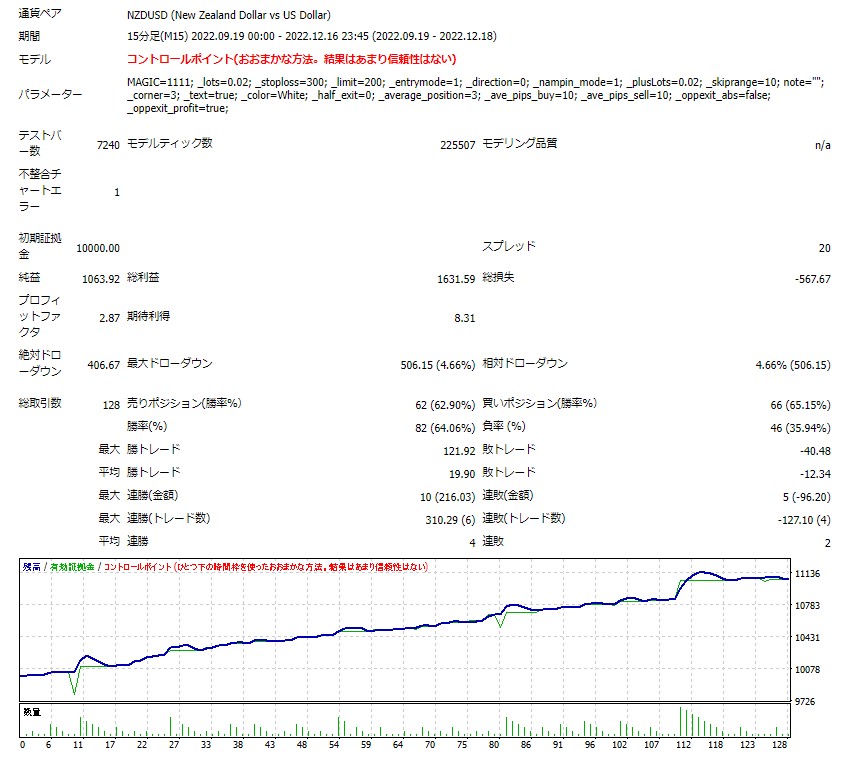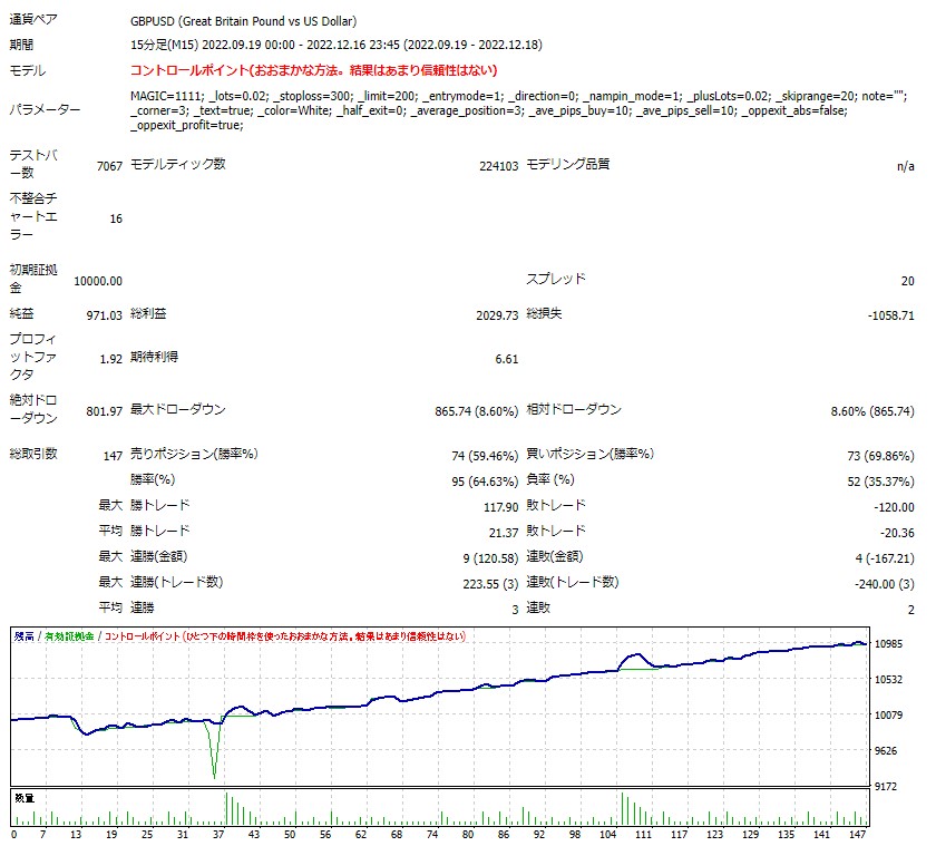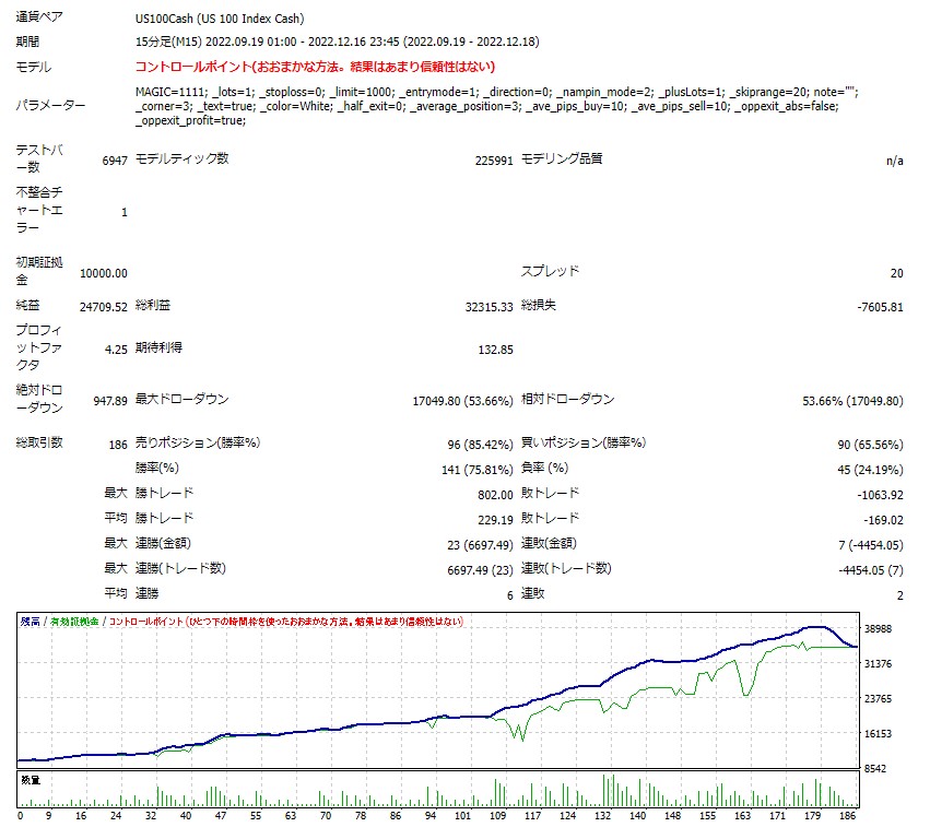 ※この結果は最小ロット設定ですので、ご自身の資金量と許容レバレッジに合わせてロットをご調整ください。