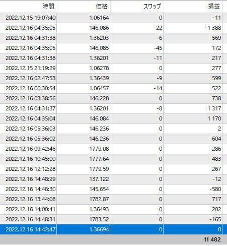最新のフォワードテスト結果(最小ロット運用 12月14日~16日 3日で+12000円