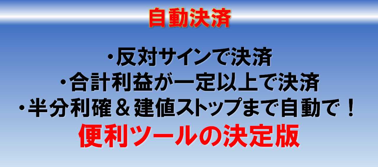 「天底名人サインで利益確定」「○pips分割決済」「建値ストップの設定」「ポジショントータルで一定利益が出たら決済」など、多彩な使い方が可能です!