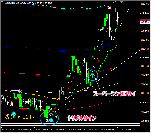 1 青⇒上昇強シンクロで上にエントリー、ホールド