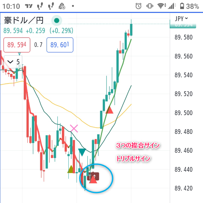 3 赤⇒下降強シンクロで下にエントリー。ホールド