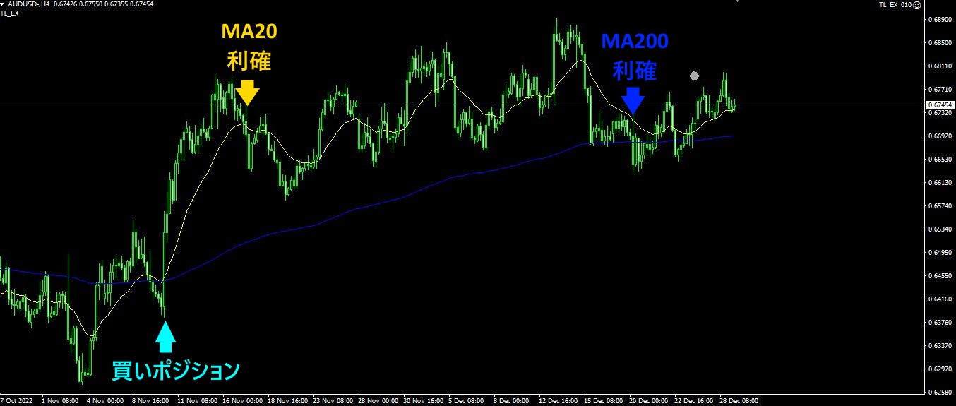 A7:表示する/しないに関係なく、MA20およびMA200の移動平均線関連機能は動作します。