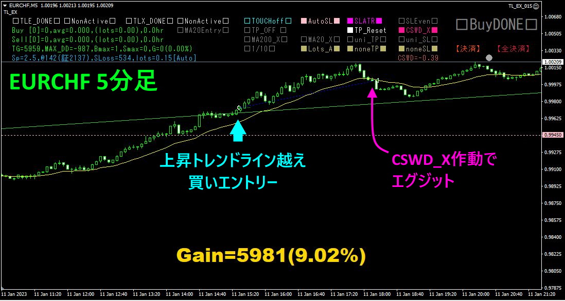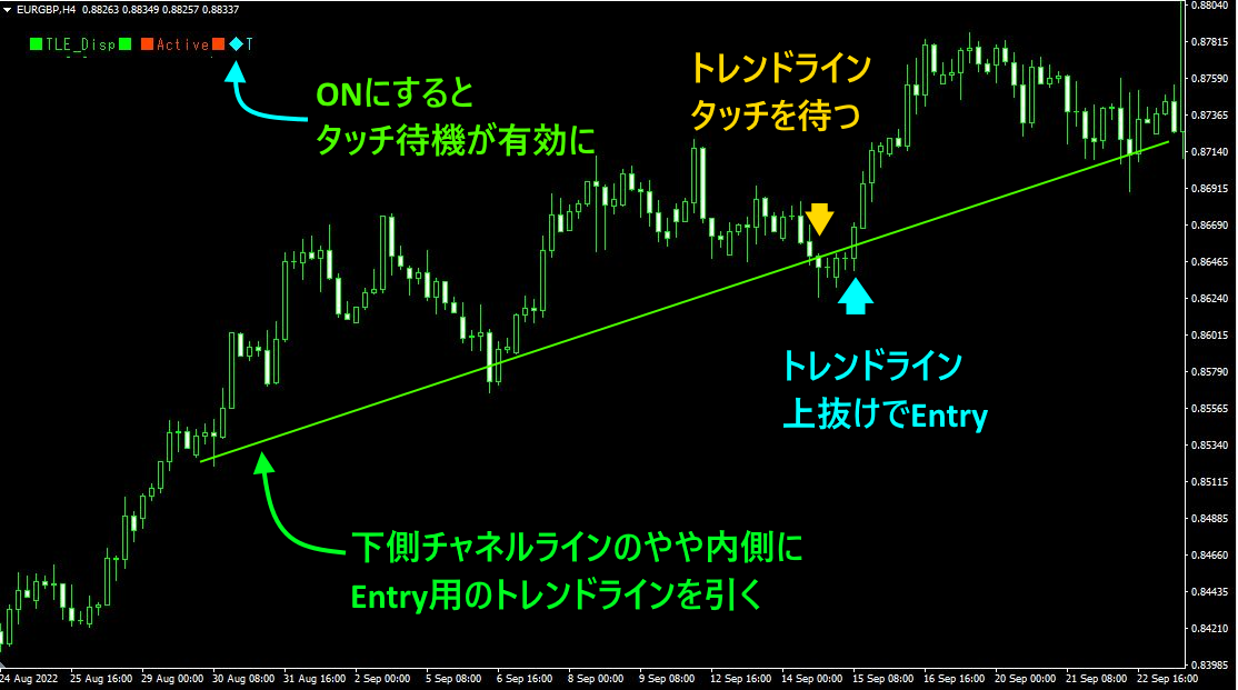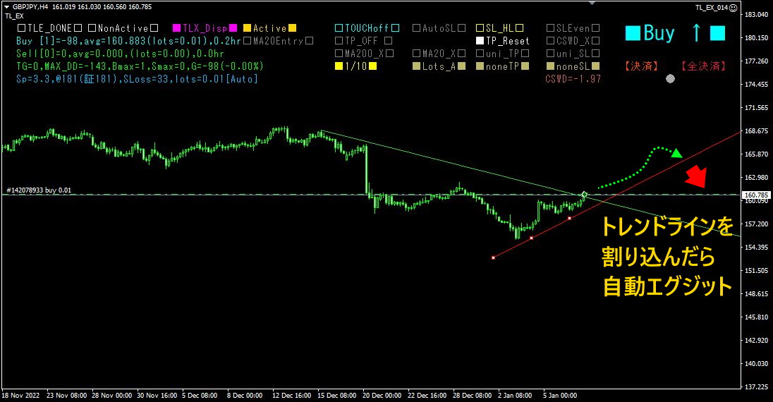 手動でエントリーしたポジションを、エグジットする為だけに「Trend Line EX」を使うという使い方もできます。