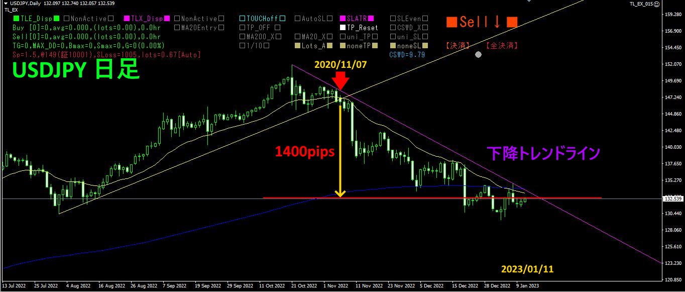 このインジケーターのすばらしいところは、エントリートレンドラインとエグジットトレンドライン、両方引けるので、本当に後はほったらかしにできるので、兼業トレーダーの我々にとっては非常に画期的なインジケーターだと思います。