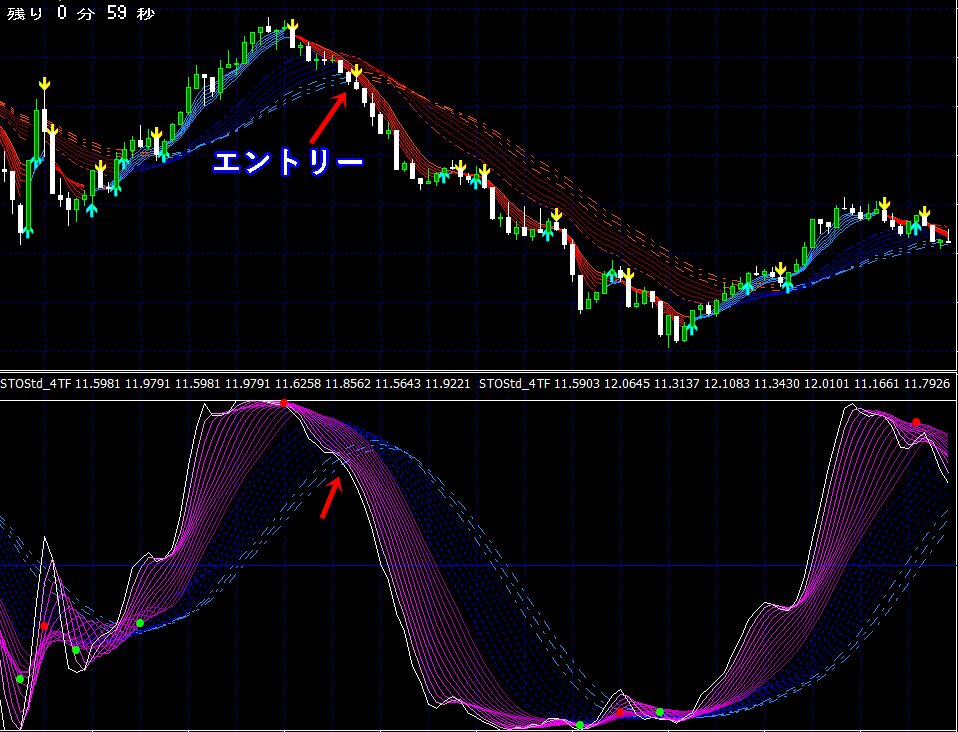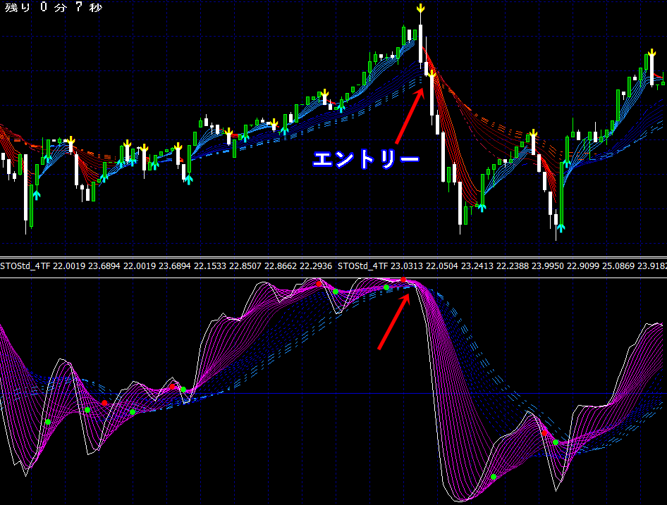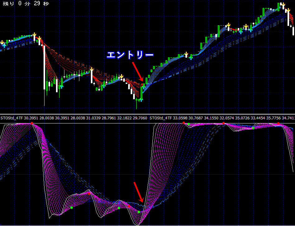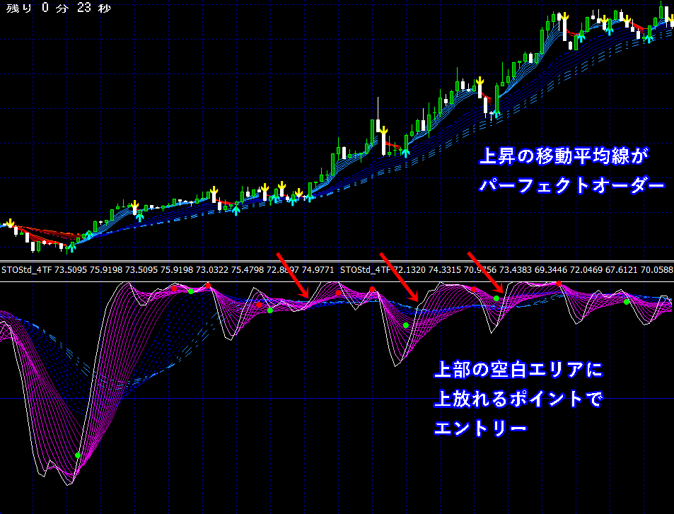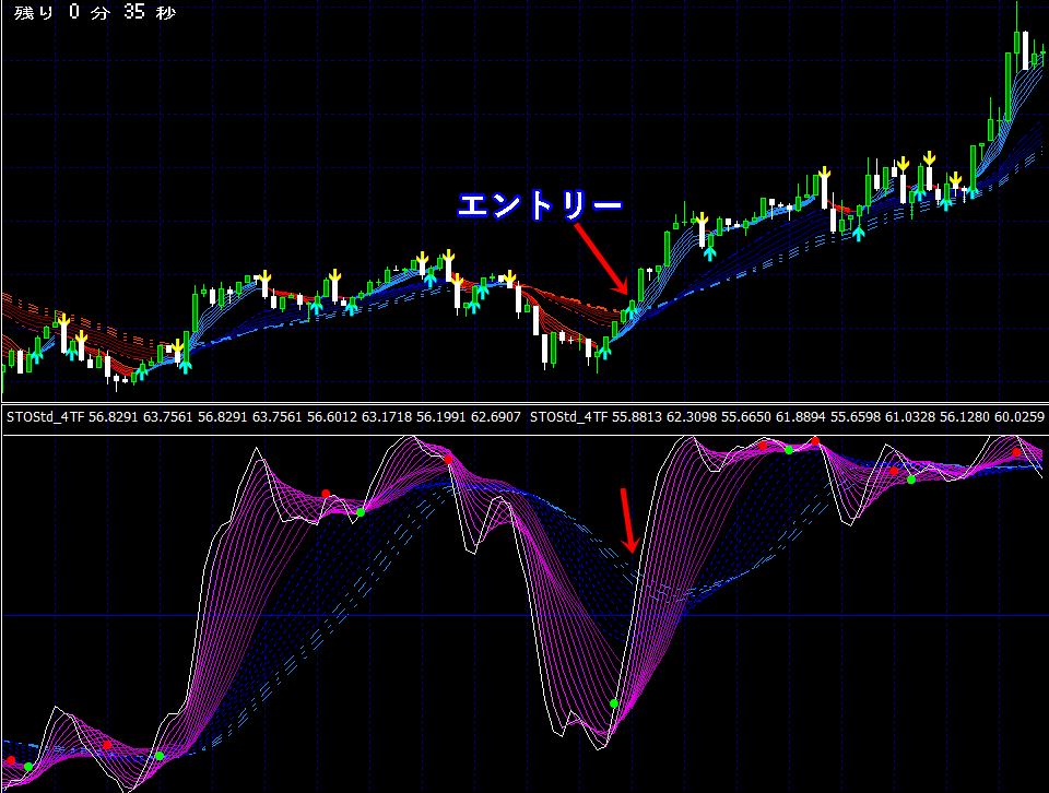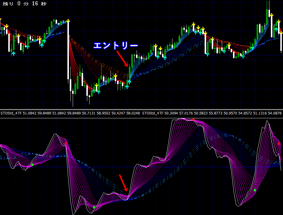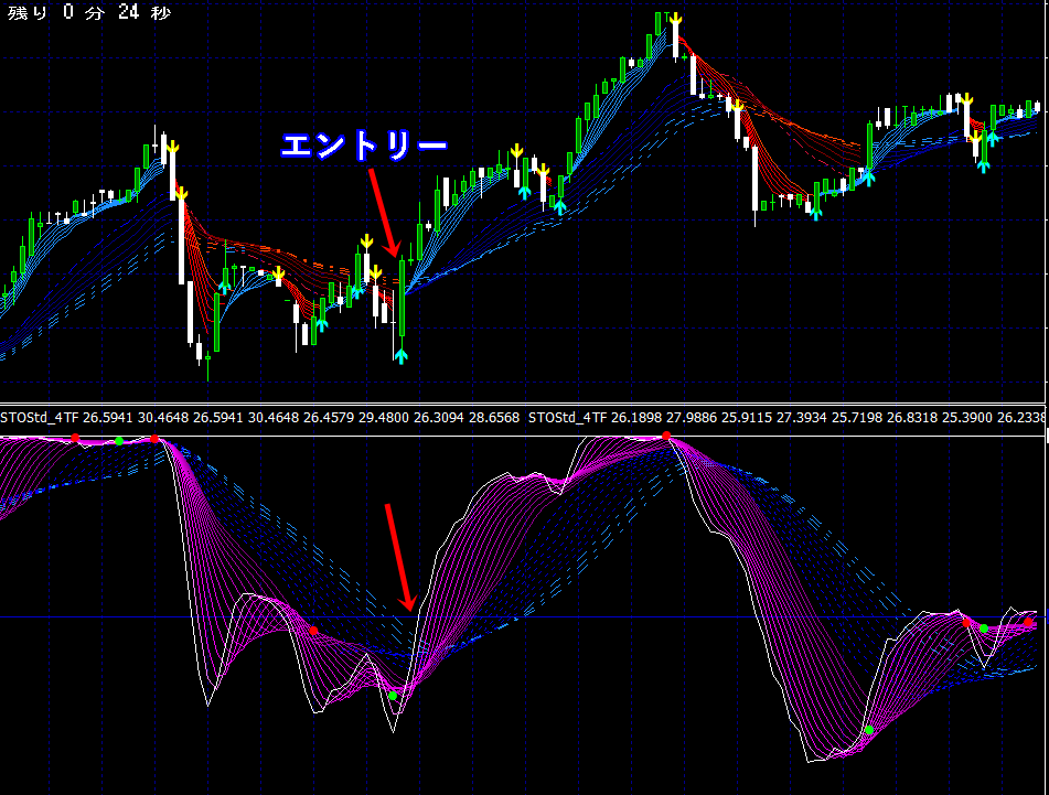 ほぼ同時に上抜けたポイントでエントリー!(矢印サインを伴えば、なお可