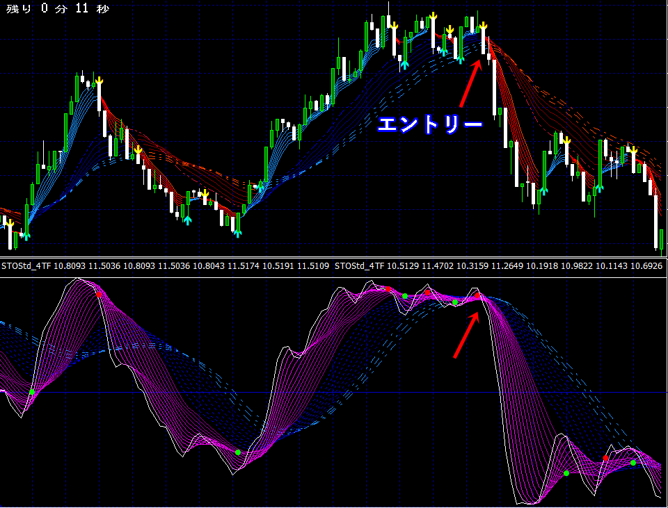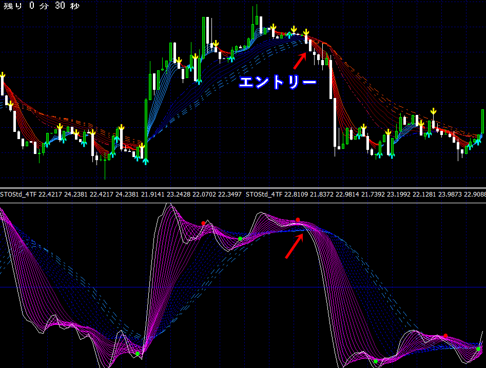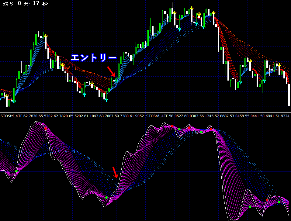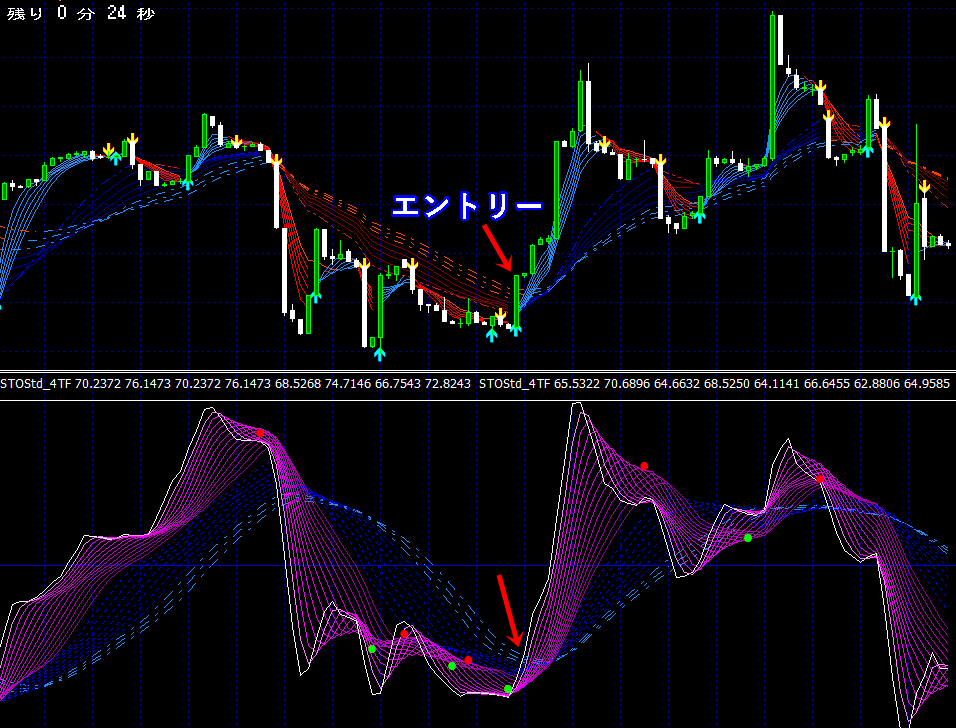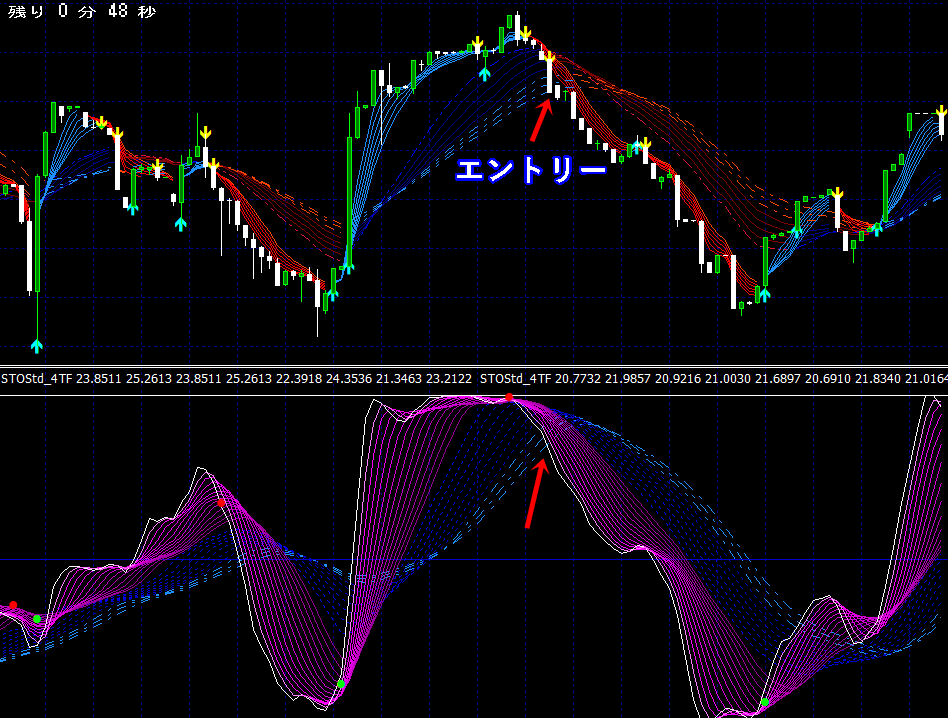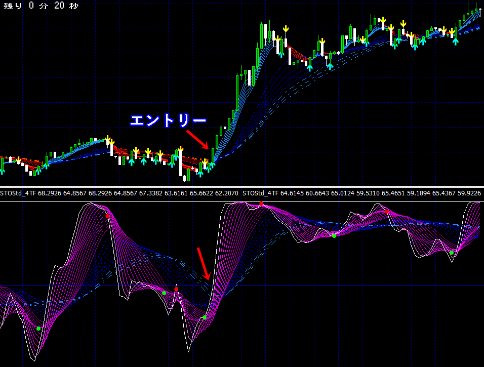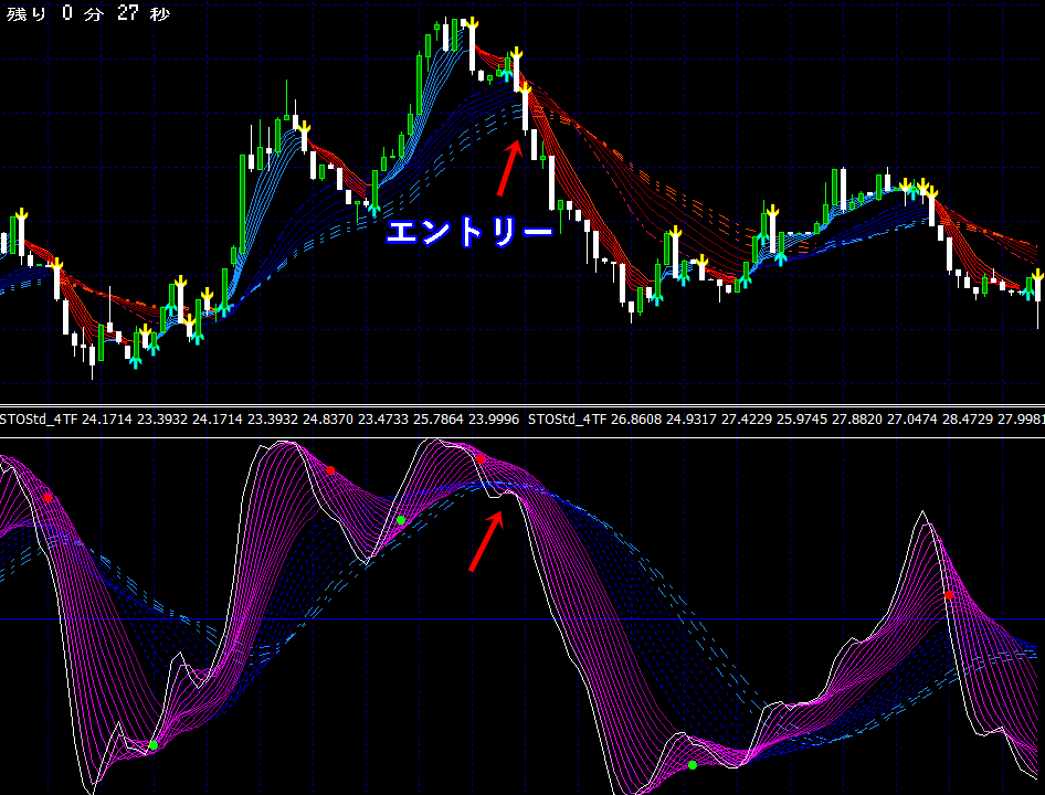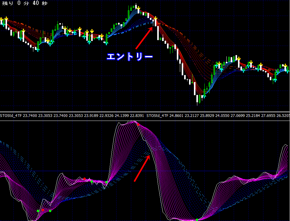 ほぼ同時に上抜けたポイントでエントリー!(矢印サインを伴えば、なお可