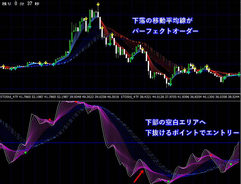 ほぼ同時に下抜けたポイントでエントリー!(矢印サインを伴えば、なお可)