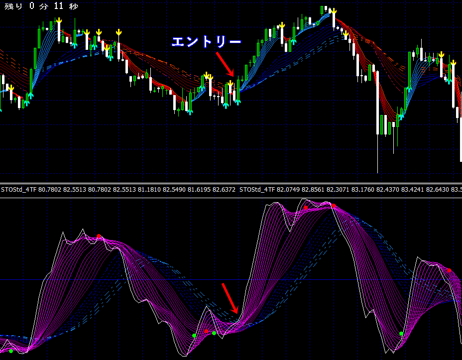 ほぼ同時に上抜けたポイントでエントリー!(矢印サインを伴えば、なお可)