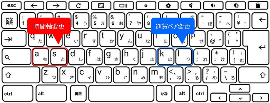任意のキー入力で簡単に時間軸や通貨ペアを変更できる