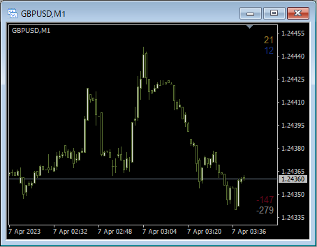 移動平均線がチャートの外にある場合、現在価格から各MAまでのpipsを表示