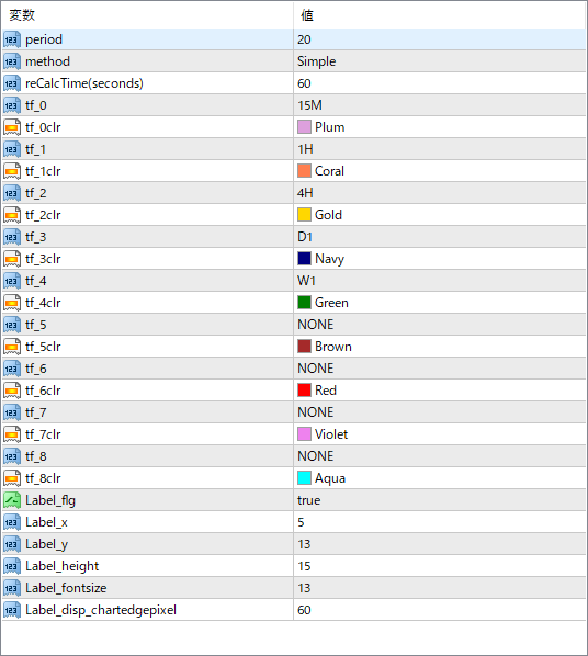 ラベルの色をタイムフレーム毎に設定できる様になりました。