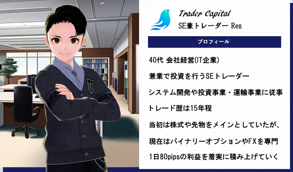 インジケーターから導き出される エントリーと決済の最適なロジックで 為替相場から利益を刈り取る無裁量の究極システム はじめまして、兼業で投資を行うSEトレーダーのりゅうと申します。 40代、会社経営をしつつ、システム開発や投資事業も行っています。 トレード歴は18年程。当初は株式や先物をメインとしていましたが、現在はバイナリーオプションやFXを生業としています。 私のFX投資法をまとめた「天空のFX」は一日4時間程度で日々安定した合計80pips程度を目指せる方法です。トレードタイプとしては1ポジションの保有時間は数分から数時間程度でスキャルピングやデイトレードに近い手法です。 私自身がFXで運用する同一条件で年間の試行回数1000回程度の検証を重ねて、SE開発の元で忠実に再現したシステムです そもそもFXで勝ち続けている人は全体の1割程度といわれていますが、勝組が身につけているものは、 1、利益が出る手法(ルール)をもっている。 2、ルール通りに取引ができる(取引に余計な思考を介入させないメンタル) 3、不調時にも資金が尽きないリスク管理能力 これらをしっかりと行う人が長年相場で生き残り続けるのです。 更に、利益が出る手法として、重要な3つのポイントとは 1、優位性のある位置でエントリーをする 2、得られる利益を伸ばす 3、相場の方向性が崩れたときは直ぐにロスカットをする 少なくとも、私が経験やセンス、運で利益を得たことはありません。 ただ有用な優れたトレード手法を機械的に行い続けていただけです。 FXは現在の位置から上がるか下がるかの確率法です。 現在よりも上がると予想すれば買いでエントリーをして、下がると予想すれば売りでエントリーをします。そして、決済も重要です。どのような方法や利益で利確するのか、損切りをするのかを明確にルール化しておくことが大切です。 こちらは実際にこのロジックを使用した時の 「1日」の収益です。 「天空のFX」で使用するロジックは、為替の進む方向を計算式で分析して、エントリーを示す高機能なロジックです。 もちろんあなたが初心者であっても大丈夫です。 上級者にも納得の利益を継続できる内容です。 「天空のFX」はトレードマニュアルPDFも充実しており、ロジックを習得してトレードルールをしっかりと身に付けてください。 そして、高機能なシステムでトレードを始めることで、為替相場から安定した利益を目指せます。 1日に数十回程度のトレードで1回に+10pips、+20pips程度を積み上げて、1日80pips程度を目標にします。 資産を増やすロジックを、しっかりと習得していきましょう。 私自身は長年のFXトレードと経験、スキルで実績を積み上げて成功した内容をロジック化しています。 FXで1年を通して勝てるトレードを目指したい! そう思うポジティブな方は、ぜひ今から解説する内容を読んで、 ロジックへの理解を深めてください。