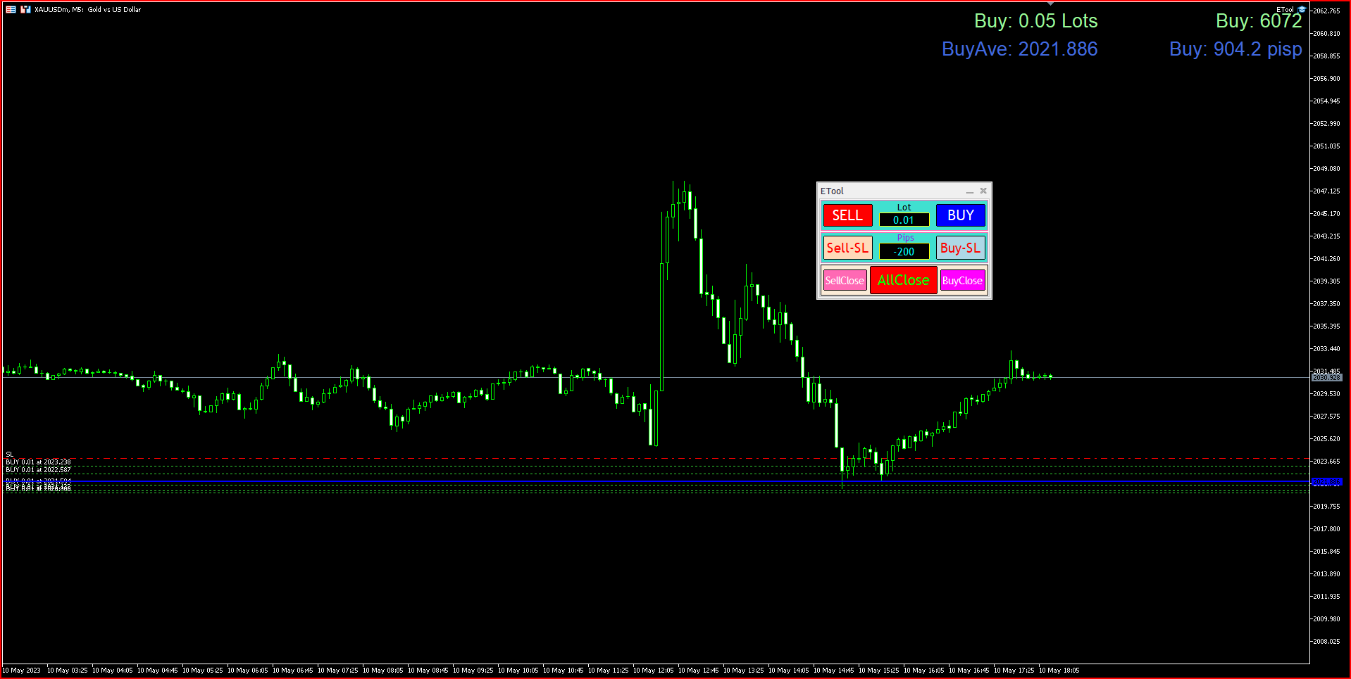 「Buy-SL」ボタンは全ての買いポジションに対してストップ設定を行います。