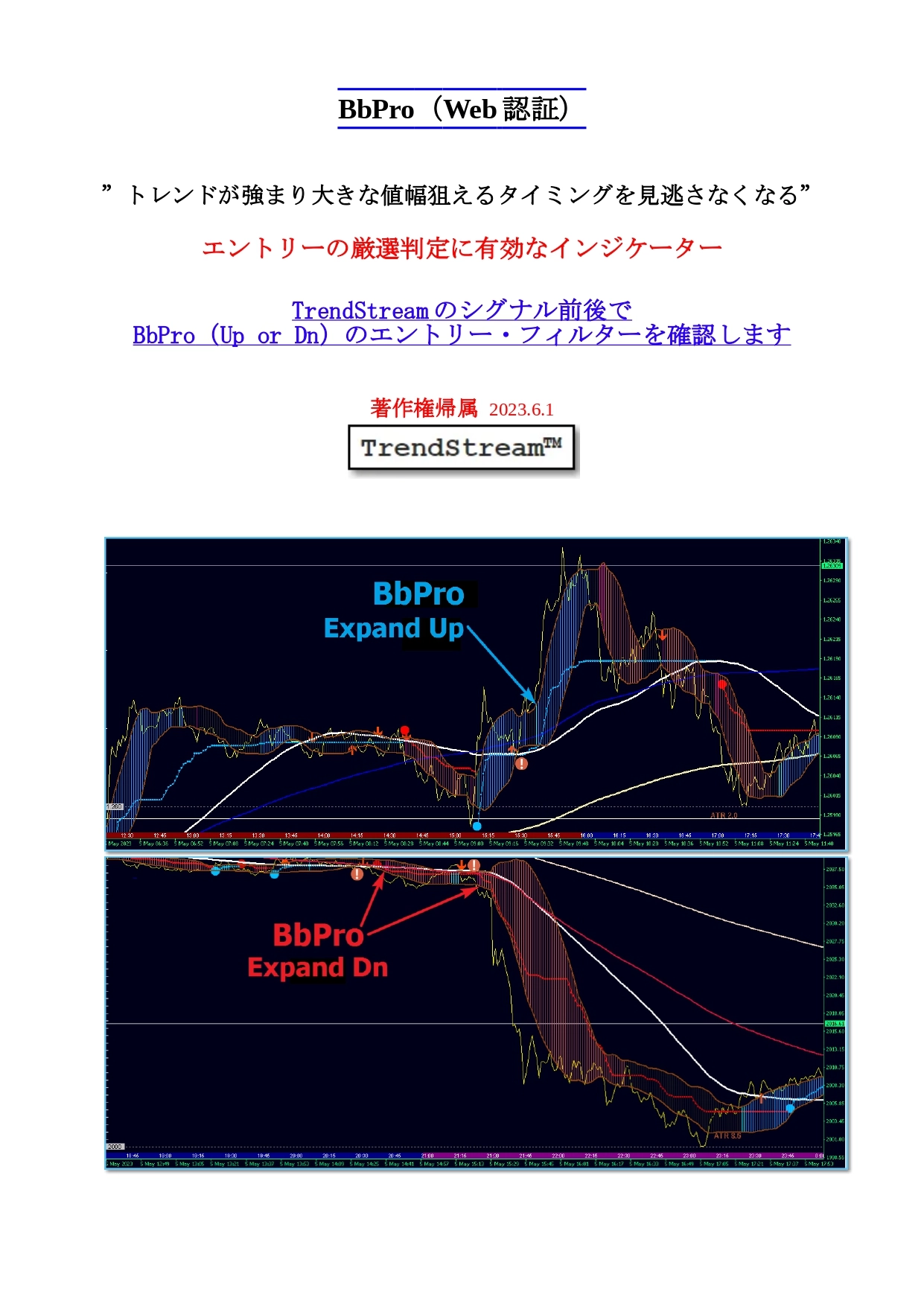 ”TrendStream”のシグナル前後で BbPro(Up or Dn)のエントリー・フィルターを確認し使用します