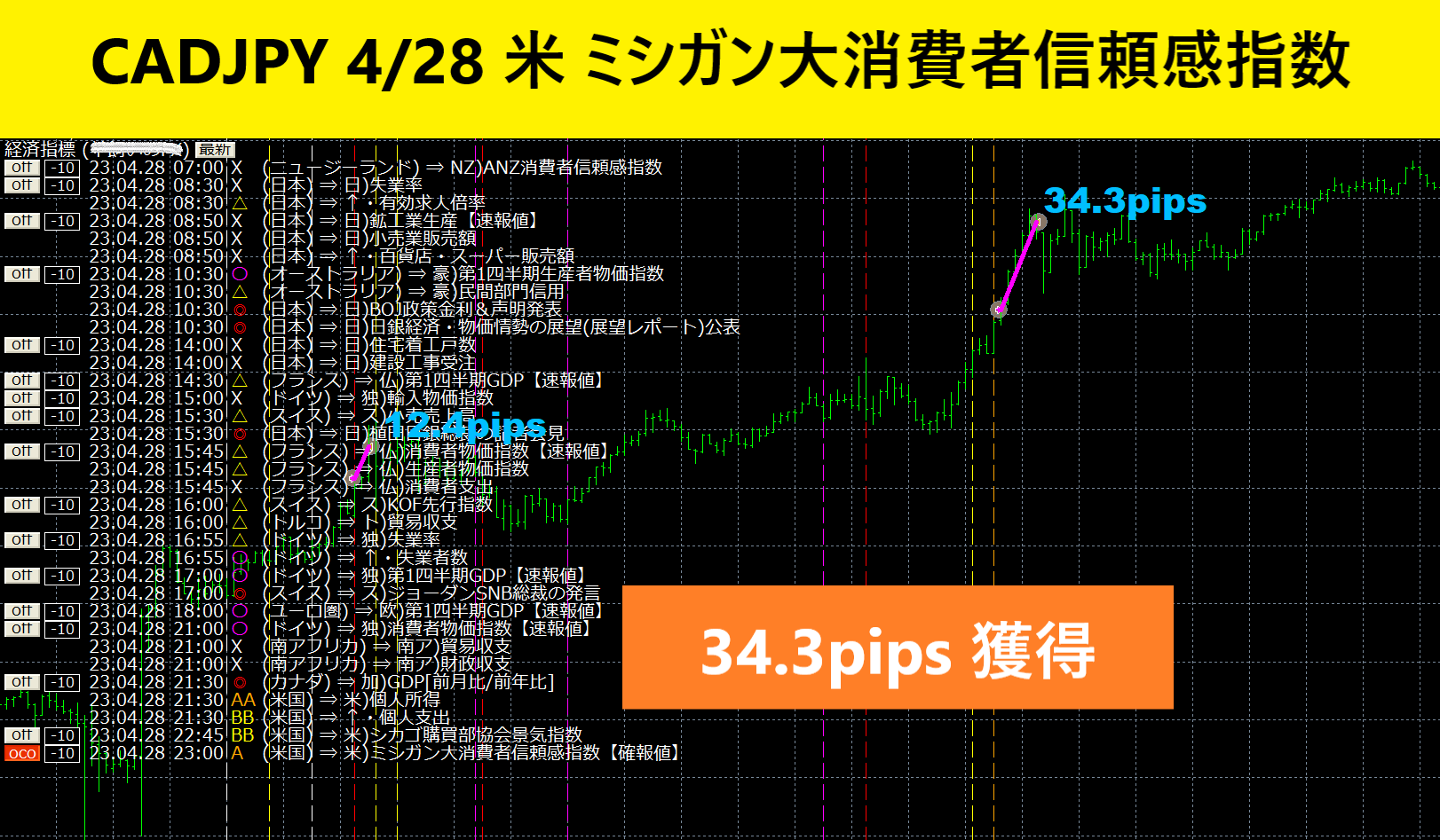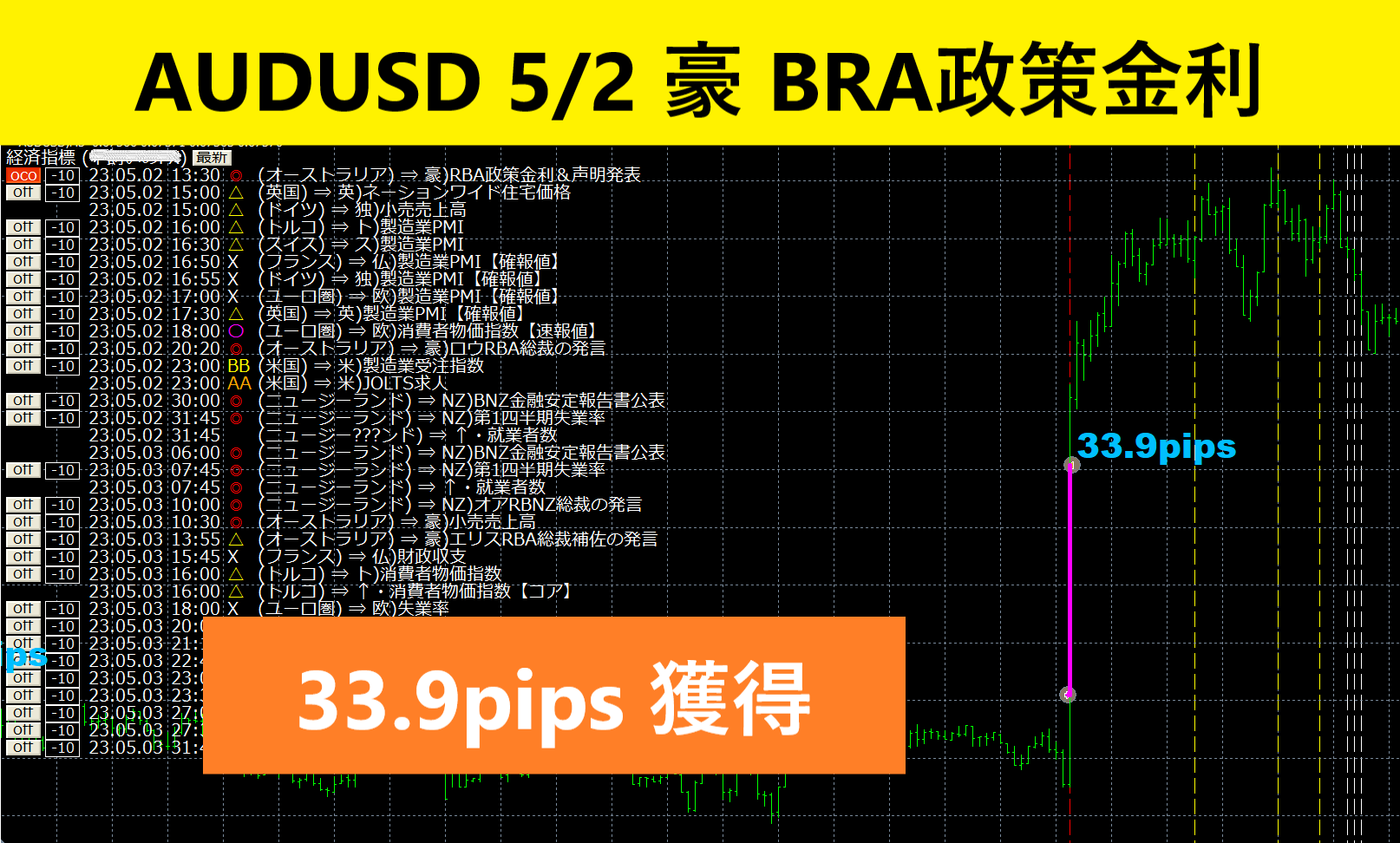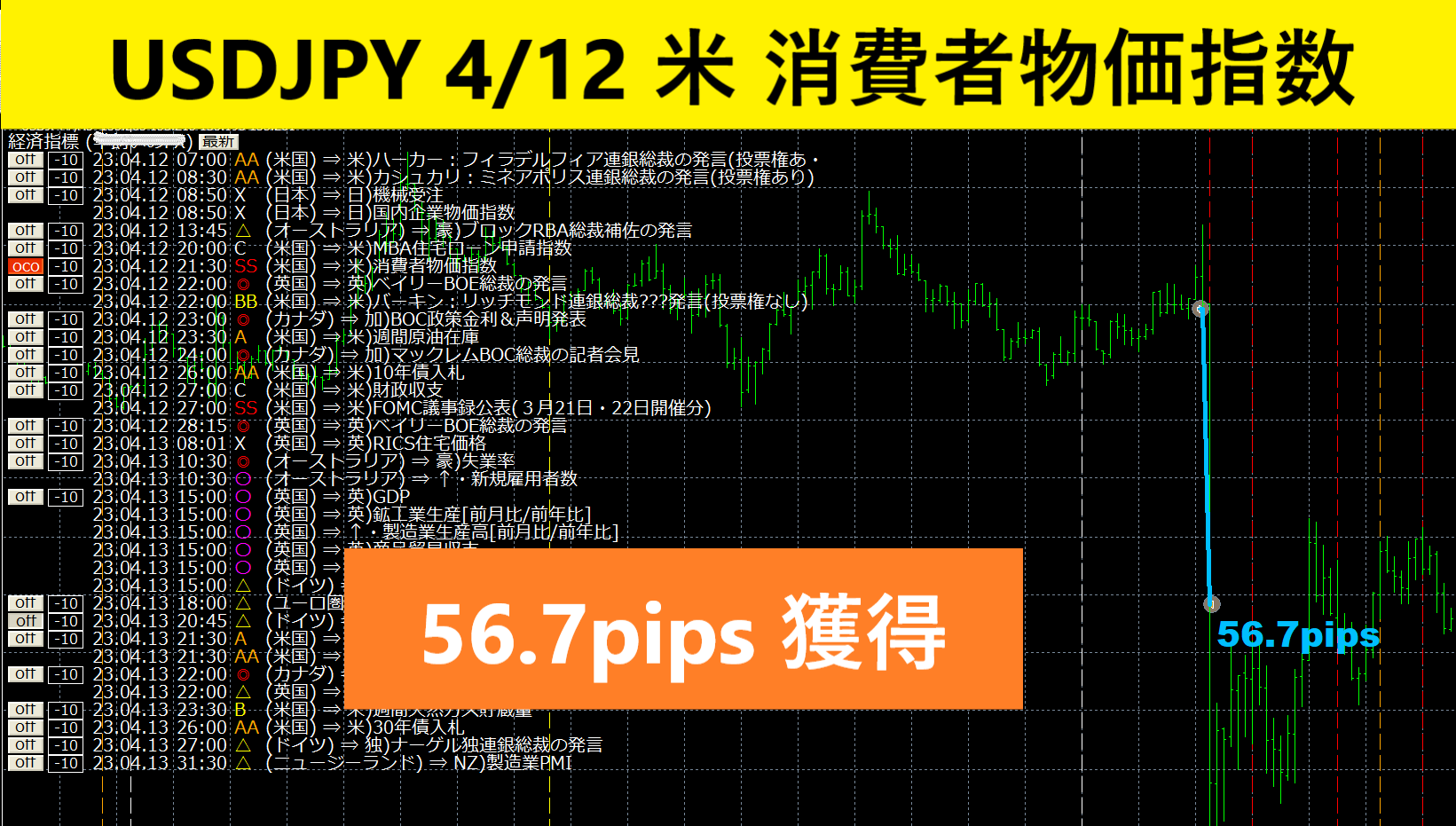 2.トレードを行う指標をON ONにした指標の時間になったらトレードを行います。