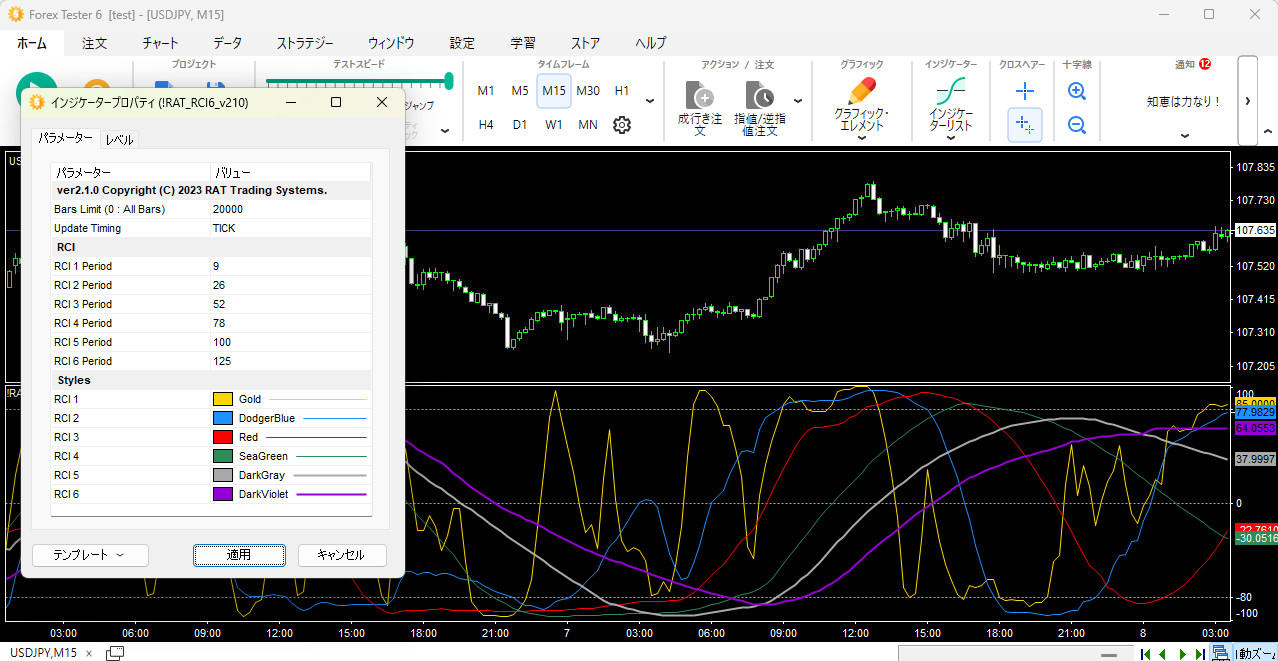 【FT6対応】最大5倍速。複数のインジケーターを使用しても高速スムーズに動作するRCIです。フォレックステスター6(ForexTester6)対応。