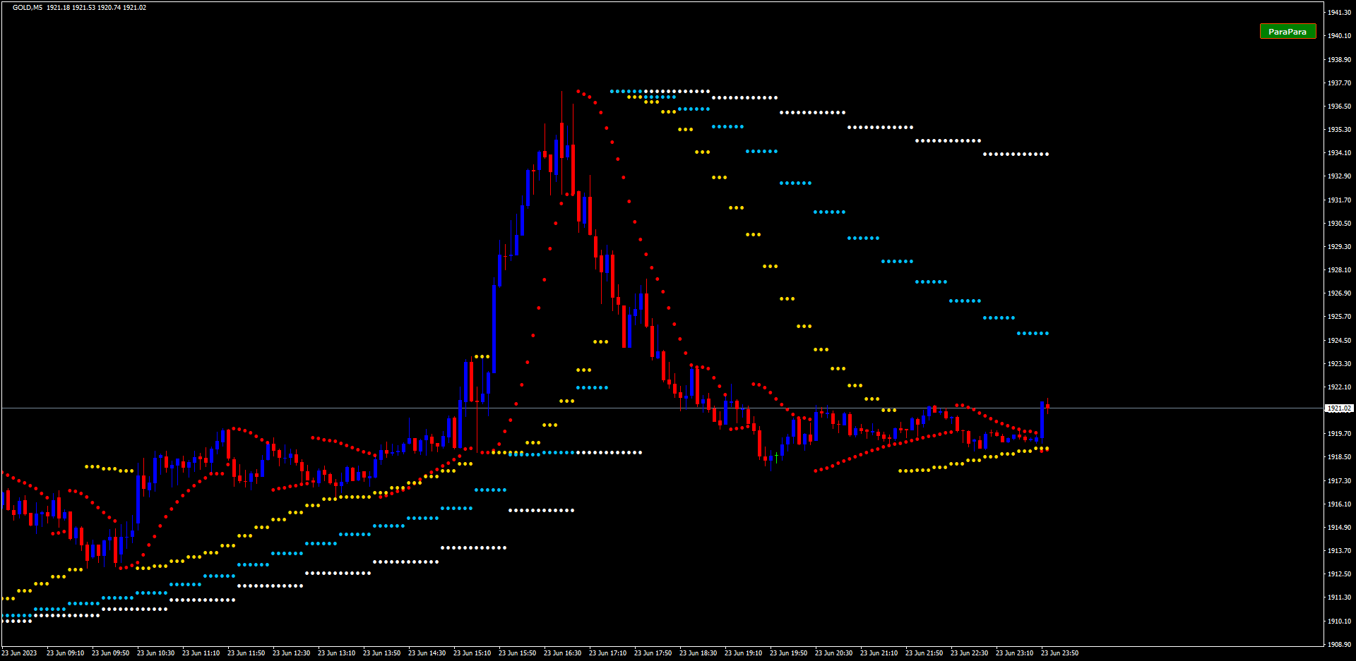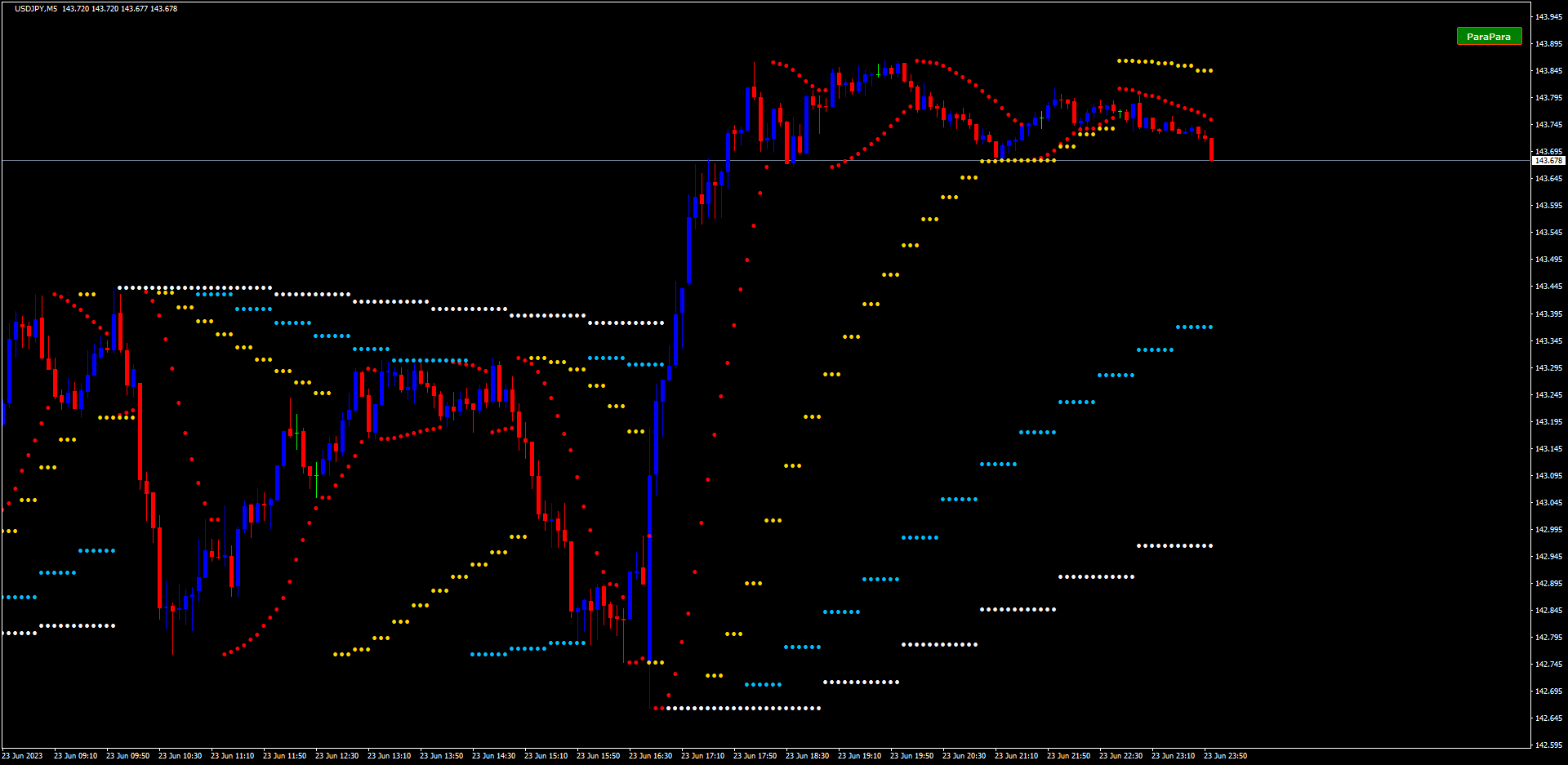 ボタンのON/OFFでパラボリックの●の表示/非表示が可能です。