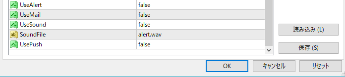 下図の通り、"DLLの使用を許可する" にチェックを入れる必要があります。 星印、矢印やバツ印の発生条件に関する設定項目   短期の平均足スムーズド    HAS1_MaMethod1 : (第1段階の)移動平均の方法 (初期設定では 2)    HAS1_MaPeriod1 : (第1段階の)移動平均の期間 (初期設定では 6)    HAS1_MaMethod2 : (第2段階の)移動平均の方法 (初期設定では 3)    HAS1_MaPeriod2 : (第2段階の)移動平均の期間 (初期設定では 2)   中期の平均足スムーズド    HAS2_MaMethod1 : (第1段階の)移動平均の方法 (初期設定では 2)    HAS2_MaPeriod1 : (第1段階の)移動平均の期間 (初期設定では 24)    HAS2_MaMethod2 : (第2段階の)移動平均の方法 (初期設定では 3)    HAS2_MaPeriod2 : (第2段階の)移動平均の期間 (初期設定では 8)   長期の平均足スムーズド    HAS3_MaMethod1 : (第1段階の)移動平均の方法 (初期設定では 2)    HAS3_MaPeriod1 : (第1段階の)移動平均の期間 (初期設定では 48)    HAS3_MaMethod2 : (第2段階の)移動平均の方法 (初期設定では 3)    HAS3_MaPeriod2 : (第2段階の)移動平均の期間 (初期設定では 16)   移動平均の方法     0:単純移動平均線(SMA,Simple MA)     1:指数平滑移動平均(EMA,Exponential MA)     2:平滑移動平均線(SMMA,Smoothed MA)     3:線形加重移動平均線(LWMA,Liner Weighted MA) 星印、矢印やバツ印の表示位置に関する設定項目  星印、矢印やバツ印の表示位置がローソク足に近すぎて見にくかったり、逆に遠すぎて場合によっては表示位置が画面外になってしまう場合もあります。これらの印を表示する高さを、下記の設定項目の値を調整することにより、修正することができます。値が大きいほど表示位置はローソク足から離れていきます。    (初期設定ではピンク色の)星印 → DeepPinkStar    (初期設定ではピンク色の)矢印 → DeepPinkArrow    (初期設定では黄色の)星印 → YellowStar    (初期設定では黄色の)矢印 → YellowArrow    (初期設定ではダークバイオレット色の)バツ印 → DarkVioletStar    (初期設定ではダークバイオレット色の)矢印 → DarkVioletArrow    (初期設定ではオレンジ色の)バツ印 → OrangeStar    (初期設定ではオレンジ色の)矢印 → OrangeArrow  また、下記の項目の値を変更することにより、星印、矢印やバツ印の形状を変更することができます。    (初期設定ではピンク色の)星印 → Arrowtype1    (初期設定ではピンク色の)矢印 → Arrowtype2    (初期設定では黄色の)星印 → Arrowtype3    (初期設定では黄色の)矢印 → Arrowtype4    (初期設定ではダークバイオレット色の)バツ印 → Arrowtype5    (初期設定ではダークバイオレット色の)矢印 → Arrowtype6    (初期設定ではオレンジ色の)バツ印 → Arrowtype7    (初期設定ではオレンジ色の)矢印 → Arrowtype8  なお、 星印、矢印やバツ印あるいはその代わりとして使用できる記号とそれに対応する番号は下表の通りです。  星印や矢印の変更については下記の投資ナビ+の記事をご覧下さい。    https://www.gogojungle.co.jp/finance/navi/359/19177 アラートに関する設定項目 UseAlert:  下図のようなアラートダイアログによりサイン発生を知らせる機能を使用する場合には true、使用しない場合には false を選択する。 UseMail:  メールによりサイン発生を知らせる機能を使用する場合には true、使用しない場合には false を選択する。 UseSound:  アラート音によりサイン発生を知らせる機能を使用する場合には true、使用しない場合には false を選択する。 SoundFile:  アラート音に使うサウンドのファイル名を入力する。 UsePush:  プッシュ通知によりサイン発生を知らせる機能を使用する場合には true、使用しない場合には false を選択する。 メールによりサイン発生を知らせる機能を使用する場合のMT4側の設定の一例 ツール → オプション → E-メール イメージ図 ※設定後にMT4を再起動させる必要があるようです。