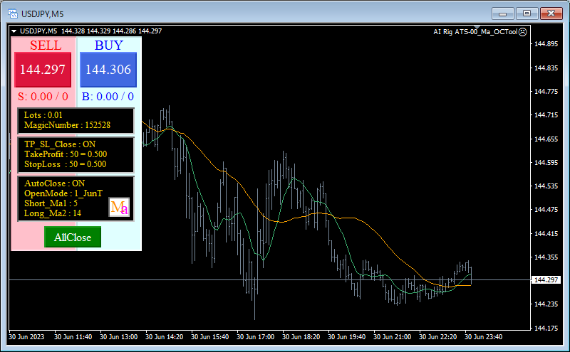 裁量トレーダーのための取得決済ツールです。 自分のタイミングで取得したい、また他のインジケータなどと組み合わせて取得タイミングを計りたい、などのユーザー向けには活躍できるツールです。 1クリックでポジションの取得ができ、決済ではパラメータで「AutoClose」機能をONにしておけば設定したタイミングで自動決済をしてくれます。これで、外出や就寝などのときも安心です。 取得時に、TakeProfit、StopLossのセットもできます。 他にもボタン一つで保有ポジションを一括決済する「AllClose」機能もあります。 MagicNumberに対応していますので、同一口座内で他のEAとの同時稼動も問題ありません。 |