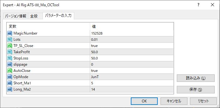 検証を行うためのそれぞれの対象範囲を表示しています。この場合の「Short_Ma1」は、「9、10、11、12、13、14、15」の7通りとなります。この抽出範囲はパラメータで変更可能です。