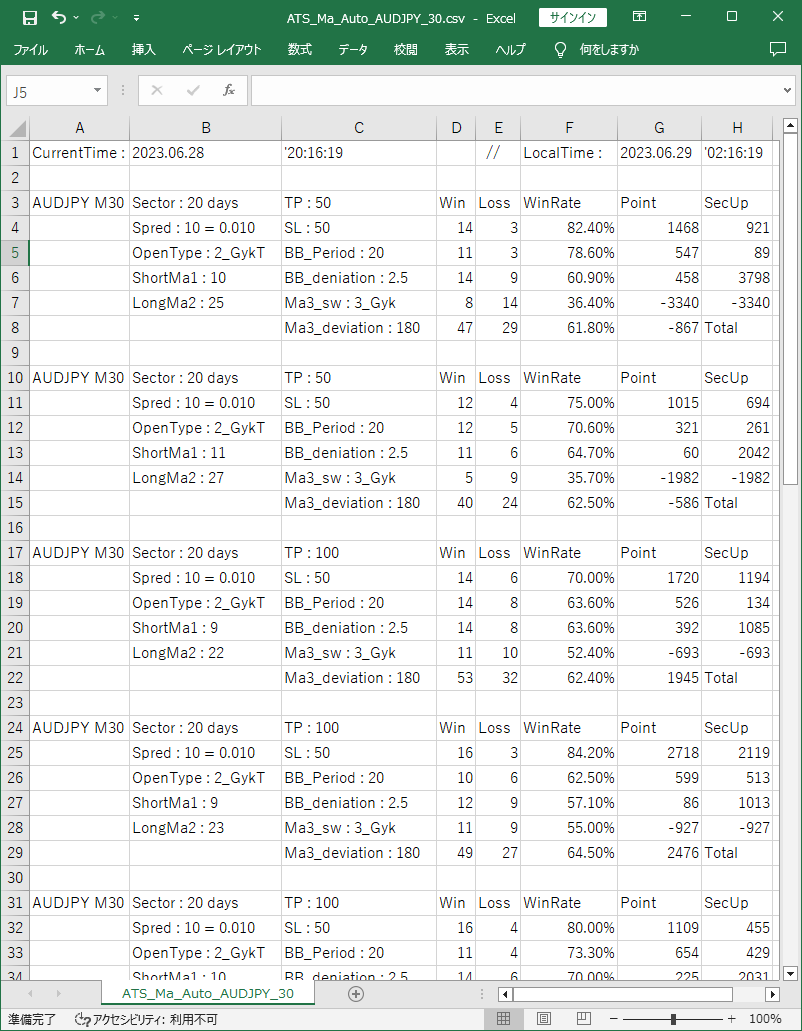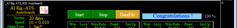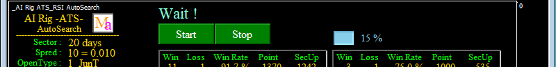 検証中は表示している数値がパターンごとにどんどん変化していきます。「9、10、11、12、13、14、15、9、10・・・」のように。 今どの辺の設定値で検証しているかがリアルでわかります。これを見てるだけでもワクワクします。結果が出るのがとても楽しみです。 |