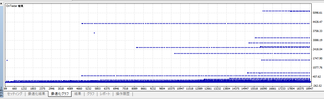 たまに、下図のように0のままの場合があります。OPTは毎回新しい乱数でパラメーターを初期化します。その際、インジケーターに合わない乱数の場合、0になりっぱなしです。または前回の履歴を消し忘れた場合も同様です。