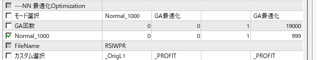 Normal_1000::最適化データとMT4を紐づけます。最適化データを任意に選ぶことを可能にします。この時、1000ケース選ぶため、必ず左側のNormal_1000のみを✔ * 0 1 999 に設定します。