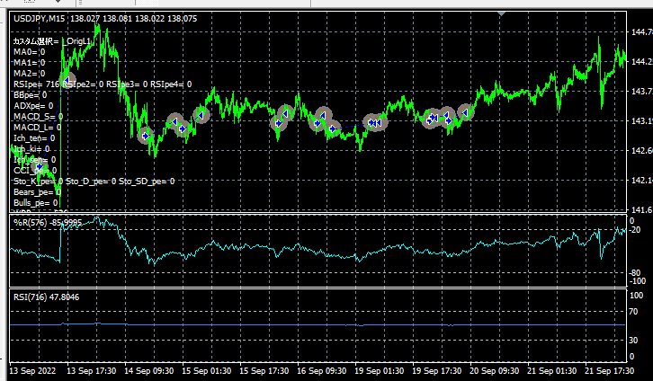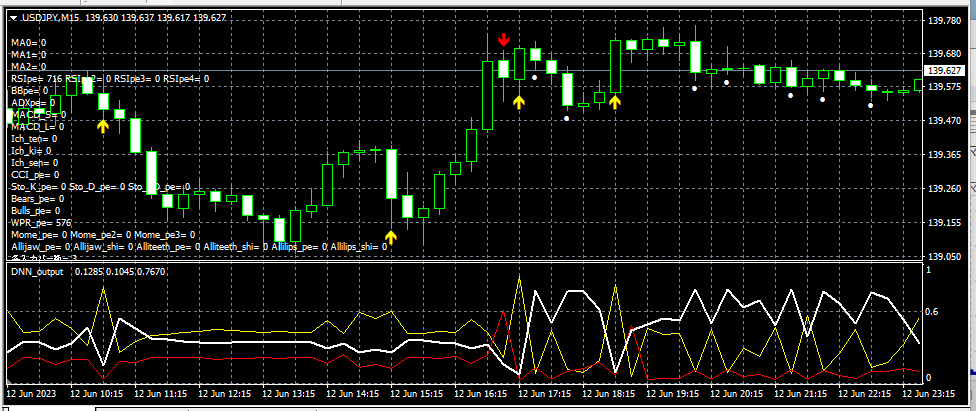 従って、DNN18は相性が悪いインジケーター同士でもなんとか最適化します。そして先入観なしで全ての可能性を統計的に追及するためインジケーターの一般的な使い方とは異なった使い方をしている様にも見受けられます。そこが独自のインジケーターとなりえます。