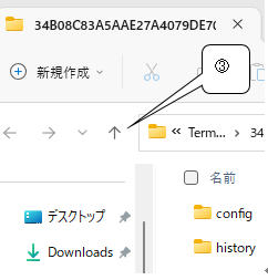 MT4左上の「ファイル」>「データフォルダを開く」>下図③をクリックし上のフォルダーへ。