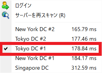 接続サーバーの自動切換機能 接続サーバーのレイテンシーが大きくなった場合に、一番上の接続サーバーに切り替えます。