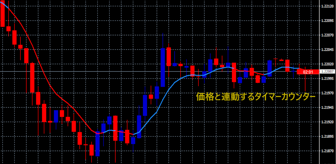 また、トレフォロの平均足スムーズドサインには、タイマーカウンターが内蔵。