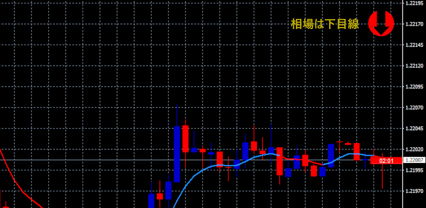 表示されているチャートが下目線の場合、チャートの右上の下矢印が点灯します。
