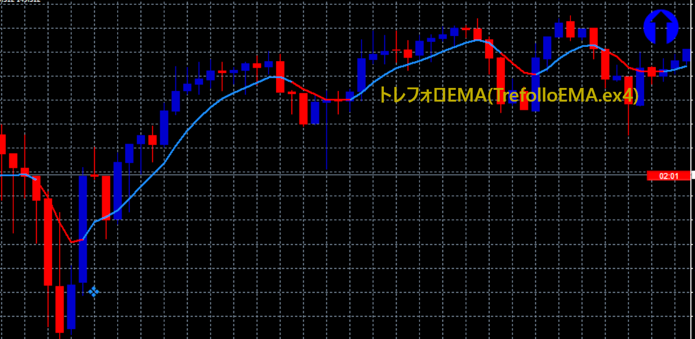 トレフォロEMAは、平均足スムーズドをEMA化したインジケーターです。平均足を表示しなくても色変わりを確認することができます。
