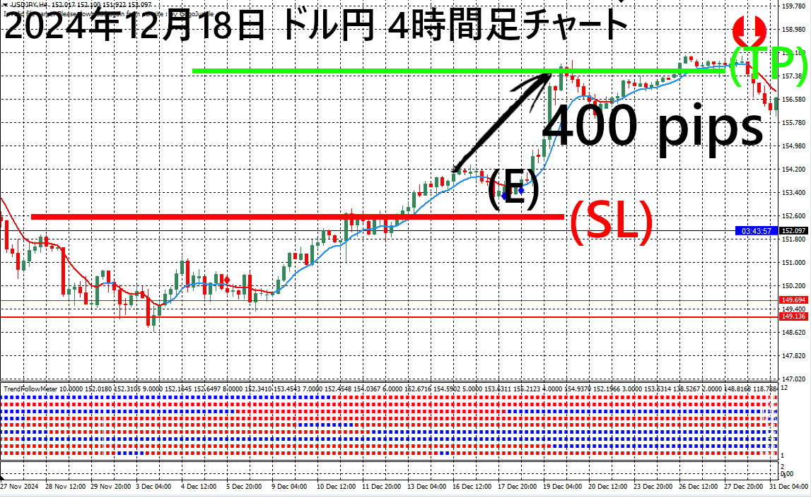 【パターン①】1.トレンドディレクションの方向を見る 2.トレンドフォローメーターでエントリーしたい方向に対する優位性を確認する 3.トレンドディレクションと同じ方向でサインが出たらエントリーを検討する