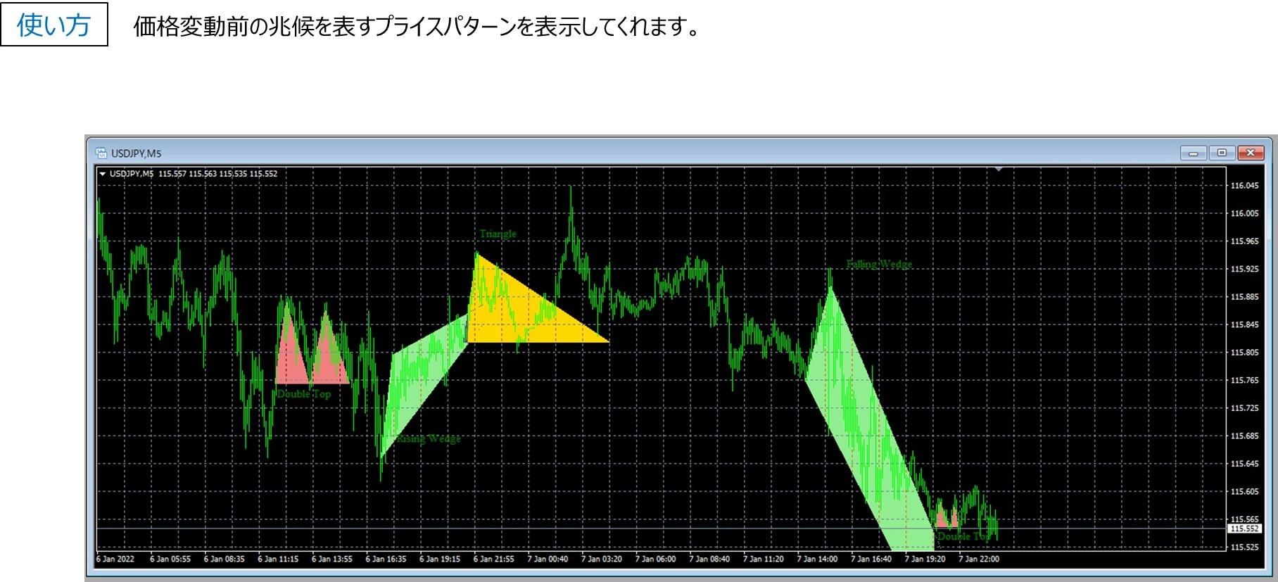 無料 価格変動前の兆候を表すプライスパターンを表示