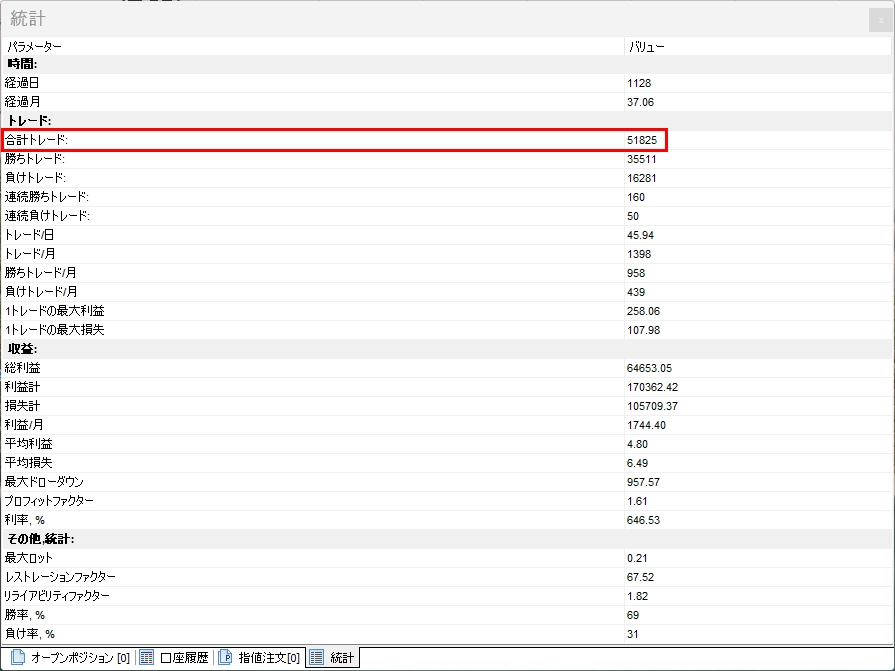 お世話になっております。 嬉しい報告です。 シンプルロジックの開発と提供をしていただきありがとうございます。 これまでとは全く環境が変わってプラス収支を納めることができるようになってきました。 約1ヵ月ほどロジックの研究を重ね、ようやく自分の理想の形になりました。 結局、行きついたところはゴールドのスキャルです。 いままで何度もスキャルをやって、自分には向いてないと諦めていたのですが、このたびシンプルGを提供いただきパラメータの研究をすることで、プラス収支にできるようになりました。 パラメータの設定についてもご報告いたします。 これは、本当に苦労しました、、、 自分の中で「すり抜けロジック」と名付けました。(勝手に命名してすみません、、、) もみあい基準値のおかげで、毎回設定を変えることなく、ボラティリティに合ったロジックに自動で順応できます!(素晴らしいです!) ~ロジック部分については中略~ それと陰陽決済を採用しています。 これは、ほんとに素晴らしいです!スキャルにはなくてはならないものとなっています。 自分の感情いれることなく自動で損切してくれるので、連敗が続いたとしてもトータルでは回収できてしまいます。 ほんとに、この機能はすごいですし、助かっています。 収支のほうは始めたのが4/24でまだ1週間ほどなのですが、30万円の初期資金が100万円までになりました! 陰陽決済を取り入れているため勝率は低く45%程度なのですが、もっと勝率を上げられるように頑張ります!! 重ね重ねになりますが、このような素晴らしいロジックを開発していただき本当にありがとうございます。