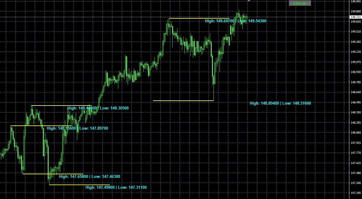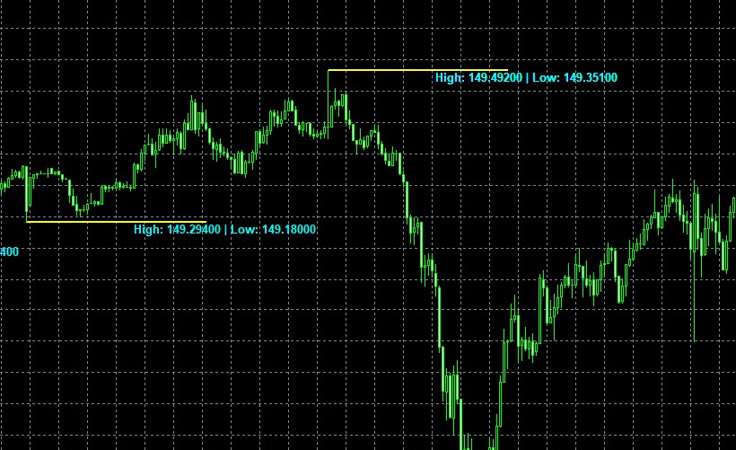 レジスタンス、サポートラインと高値、安値を自動で表示