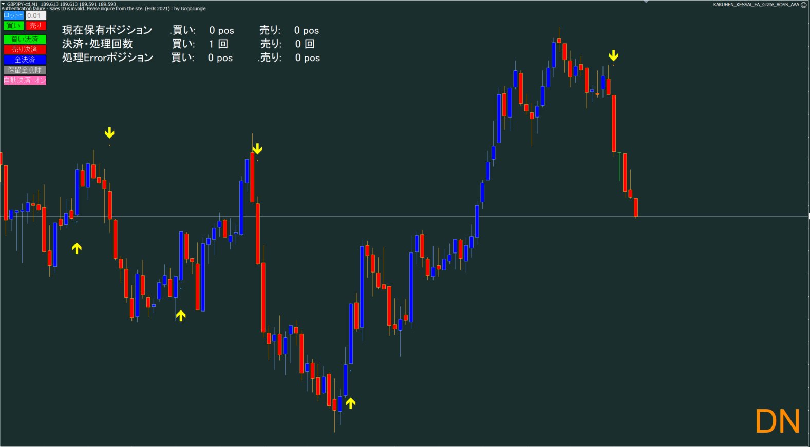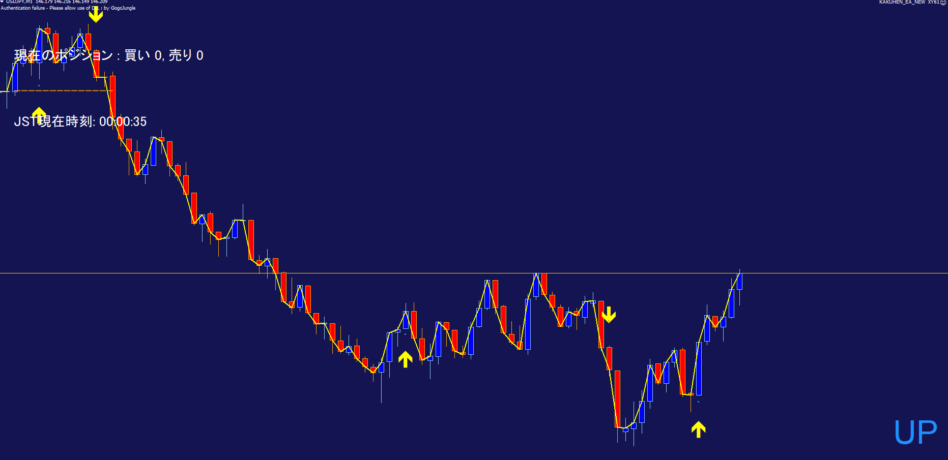 ◎注意 MT4を再起動すると、一番最近の矢印サインが機能してポジションが自動決済されてしまいます。ポジションがある場合は、再起動しないでください。初めてEAをチャートに読み込んだ時も同様です。