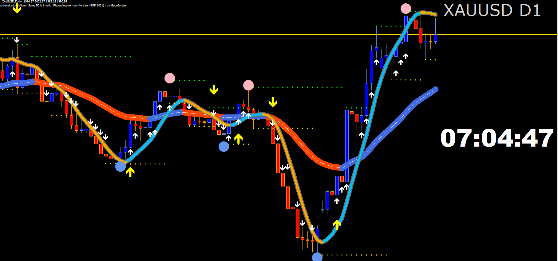 4 直近の高値・安値を示す●サイン Golden_HiLo(高値・安値更新で移動します。)