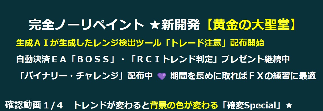 この黄金の大聖堂は、勝たせる道具ではなく、一般の人を負けないようにさせる道具だからです。これを使うことで、トレンドの方向を常に正確に把握できるため、普通に使っても確率的に勝てる可能性を高め、負け超すリスクを大きく引き下げるものになっています。